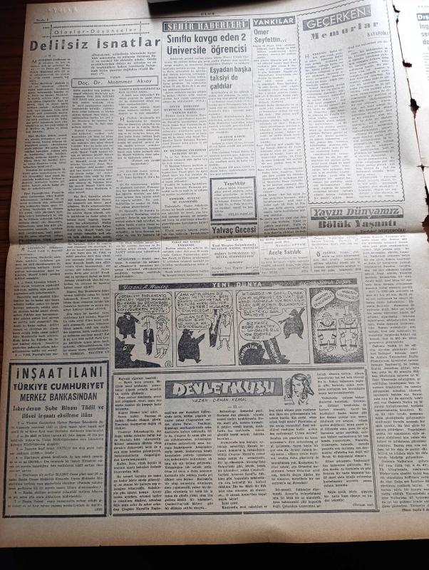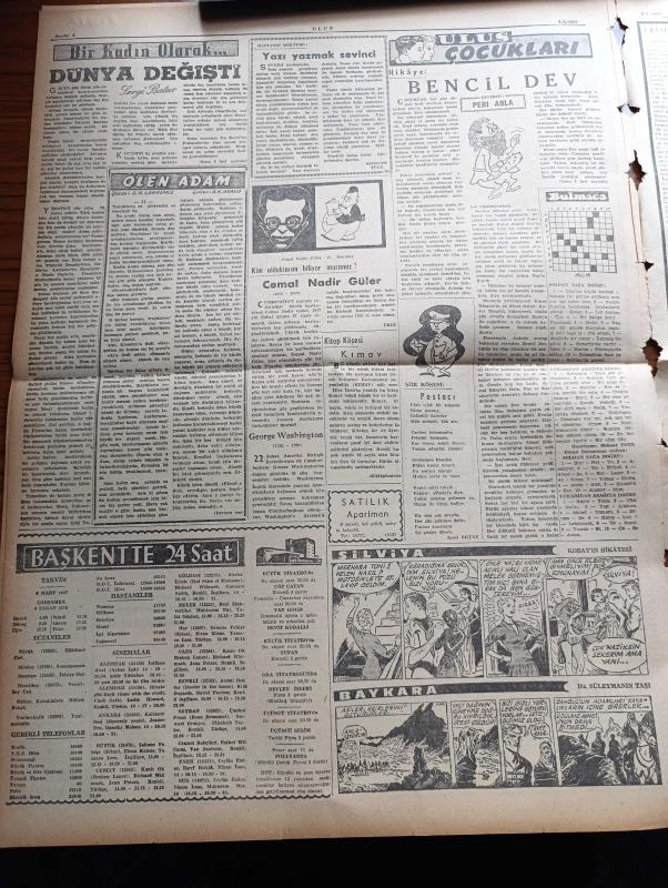Ulus Gazetesi - 6 Mart 1957 - Devletkuşu Yazan Orhan Kemal Yazı Dizisi - Hüseyin Cahit Yalçın - İsrail Gazze'den Üç Haftada Çekilecek - İsrail'de Büyük Çapta Nümayişler Yapıldı - Suriyeli 2 Önemli Şahıs Hasan El Atraş ile Salah Çiçekli Bize Sığındı - Sırrı Atalay'ın Duruşması Iğdır Ağır Ceza'da Başladı - Süreyya Babür'ün İcat Ettiği Islıkla Motor Durduran Cihaz - Oktay Engin Selanikte Gıyaben Yargılanıyor - Ünlü Rus Yazarı Nicouline Ankara'da - CHP Genel Başkanı İsmet İnönü - Doktor Rebii Barkın'ın Broşürü Savcılık Tarafından Toplatıldı - Delilsiz İsnatlar Yazan Doçent Doktor Muammer Aksoy - Tanınmış Bir Kanser Uzmanı Evarts A. Graham Öldü - Canlı Köşkün Esrarı Yazan Bülent Ecevit - Migros'tan 30 Gram Kahve Almak İçin 10 Liralık Eşya Almak Şart - Yakup Kadri Karaosmanoğlu - Kazazedeler Adası Kefken - Cemal Nadir Güler - Silviya Kobay'ın Hikayesi Çizgi Roman - Baykara Hz. Süleyman Taşı Çizgi Roman - Ankara İstanbul Radyosu Programı - Galatasaray'ın Çetin Rakibi Adalet - Tülin Korman, Kasım Gülek tarafından kaleme alınmıştır. Ulus Gazetesi - 6 Mart 1957 - Devletkuşu Yazan Orhan Kemal Yazı Dizisi - Hüseyin Cahit Yalçın - İsrail Gazze'den Üç Haftada Çekilecek - İsrail'de Büyük Çapta Nümayişler Yapıldı - Suriyeli 2 Önemli Şahıs Hasan El Atraş ile Salah Çiçekli Bize Sığındı - Sırrı Atalay'ın Duruşması Iğdır Ağır Ceza'da Başladı - Süreyya Babür'ün İcat Ettiği Islıkla Motor Durduran Cihaz - Oktay Engin Selanikte Gıyaben Yargılanıyor - Ünlü Rus Yazarı Nicouline Ankara'da - CHP Genel Başkanı İsmet İnönü - Doktor Rebii Barkın'ın Broşürü Savcılık Tarafından Toplatıldı - Delilsiz İsnatlar Yazan Doçent Doktor Muammer Aksoy - Tanınmış Bir Kanser Uzmanı Evarts A. Graham Öldü - Canlı Köşkün Esrarı Yazan Bülent Ecevit - Migros'tan 30 Gram Kahve Almak İçin 10 Liralık Eşya Almak Şart - Yakup Kadri Karaosmanoğlu - Kazazedeler Adası Kefken - Cemal Nadir Güler - Silviya Kobay'ın Hikayesi Çizgi Roman - Baykara Hz. Süleyman Taşı Çizgi Roman - Ankara İstanbul Radyosu Programı - Galatasaray'ın Çetin Rakibi Adalet - Tülin Korman adlı eser Türkçe dilindedir.