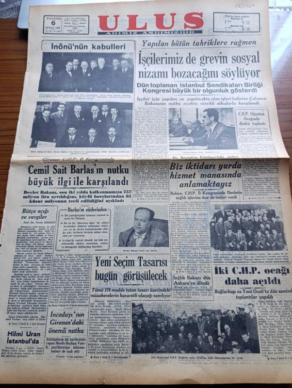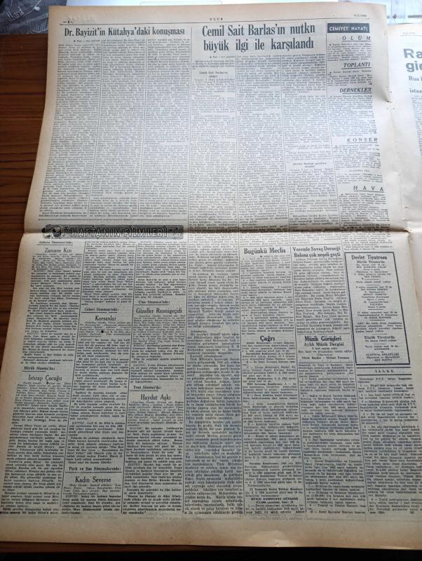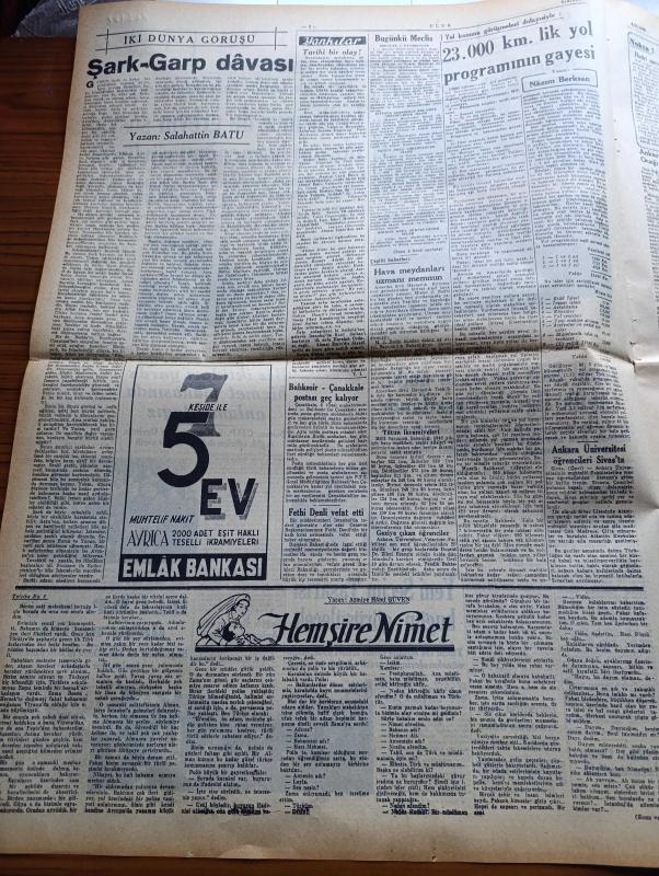 Ulus Gazetesi - 6 Şubat 1950 - Profesör Doktor Yavuz Abadan Köşe Yazısı - Cumhurbaşkanı İsmet İnönü'nün Dünkü Kabulleri - Yapılan Bütün Tahriklere Rağmen İşçilerimiz De Grevin Sosyal Nizami Bozacağını Söylüyor - Cemil Sait Barlas'ın Nutku Büyük İlgi İle Karşılandı - Yeni Seçim Tasarısı Bugün Görüşülecek- Sağlık Ve Sosyal Yardım Bakanı Kemali Bayezit Biz İktidarı Yurda Hizmet Manasında Anlamaktayız Dedi - Şark Garp Davası Yazan Salahattin Batu - Hemşire Nimet Yazan Azmiye Hami Güven Yazı Dizisi - Schumacher İhbar Ediyor 600 Bin Komünist Berlin'e Bir Yürüyüş Yapacak - Komünist Çin Rusların Emri Altına Giriyor - Irak Kabinesi Dün Kuruldu - Kadınlar Birliği İzmir Şubesi De Kuruldu - İstanbul'da Ekmek Darlığı Bahis Mevzuu Değil - Haftanın Filmleri - Güzeller Resmigeçidi Ulus Sinemasında - Fotoğraflarla Dünya Olayları - Havalarda Soğuk Harp Radyo Harbi Gitgide Şiddetleniyor - Resimli Film Hikâyesi Samson Ve Dalila - Kadın Severse Park Ve Sus Sinemalarında - Charles Dickens'in Ölmez Eseri adlı eser, Kitap > Süreli Yayınlar > Gazeteler > Türkiye > Genel > Günlük kategorisinde İkinci El olarak satıştadır.