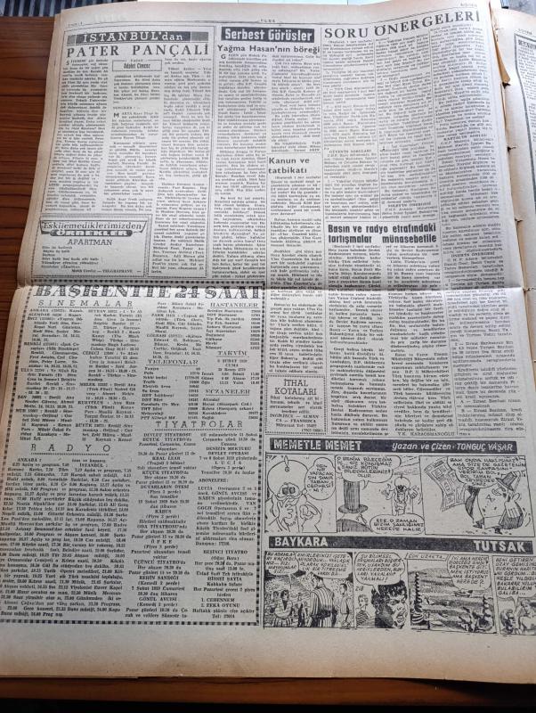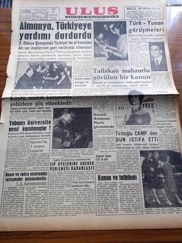 Ulus Gazetesi - 6 Şubat 1959 - Almanya Türkiye'ye Yardımı Durdurdu - 2. Dünya Savaşı'nda Türkiye'de El Konulan Alman Mallarının Geri Verilmesi İsteniyor - Küba İhtilali Kahramanı Fidel Castro'nun Kızkardeşi Augustino Castro İsviçre'de Öğrenci - Türk Yunan Görüşmeleri - Tanıdınız Mı Brigitte Bardot - Yabancı Üniversite Nasıl Kurulmuştur - Sinema Facialarından Sonra İstanbul'da 3 Sinema Kapatıldı - Yakup Kadri Karaosmanoğlu Köşe Yazısı - Alaattin Tiritoğlu Cumhuriyetçi Köylü Millet Partisi'nden Dün İstifa Etti - İşçiler Ve Onların Partisi Yazan Ali Rıza Arı - Kuklalar Yazan Oktay Verel Yazı Dizisi - Hiciv Mektubu Gönderen Zonguldak Defterdarı Hikmet Koç Tevkif Edildi - Pater Pançali Yazan Adalet Cimcoz - Ankara'da Sinemalar Ve Tiyatrolar Programı - Memetle Memet Yazan Ve Çizen Tonguç Yaşar - Baykara Tutsak Çizgi Roman - Ruti Değirmenli Yumak - Dertli Ana Filmi Başrolde Nedret Güvenç Ve Ahmet Mekin Melek Ve San Sinemasında - Şekerbank - Dansözler Kraliçesi İnci Birol Yeni Tiyatroda, Kemal Atatürk Kasım Gülek tarafından kaleme alınmıştır. Ulus Gazetesi - 6 Şubat 1959 - Almanya Türkiye'ye Yardımı Durdurdu - 2. Dünya Savaşı'nda Türkiye'de El Konulan Alman Mallarının Geri Verilmesi İsteniyor - Küba İhtilali Kahramanı Fidel Castro'nun Kızkardeşi Augustino Castro İsviçre'de Öğrenci - Türk Yunan Görüşmeleri - Tanıdınız Mı Brigitte Bardot - Yabancı Üniversite Nasıl Kurulmuştur - Sinema Facialarından Sonra İstanbul'da 3 Sinema Kapatıldı - Yakup Kadri Karaosmanoğlu Köşe Yazısı - Alaattin Tiritoğlu Cumhuriyetçi Köylü Millet Partisi'nden Dün İstifa Etti - İşçiler Ve Onların Partisi Yazan Ali Rıza Arı - Kuklalar Yazan Oktay Verel Yazı Dizisi - Hiciv Mektubu Gönderen Zonguldak Defterdarı Hikmet Koç Tevkif Edildi - Pater Pançali Yazan Adalet Cimcoz - Ankara'da Sinemalar Ve Tiyatrolar Programı - Memetle Memet Yazan Ve Çizen Tonguç Yaşar - Baykara Tutsak Çizgi Roman - Ruti Değirmenli Yumak - Dertli Ana Filmi Başrolde Nedret Güvenç Ve Ahmet Mekin Melek Ve San Sinemasında - Şekerbank - Dansözler Kraliçesi İnci Birol Yeni Tiyatroda adlı eser Türkçe dilindedir.