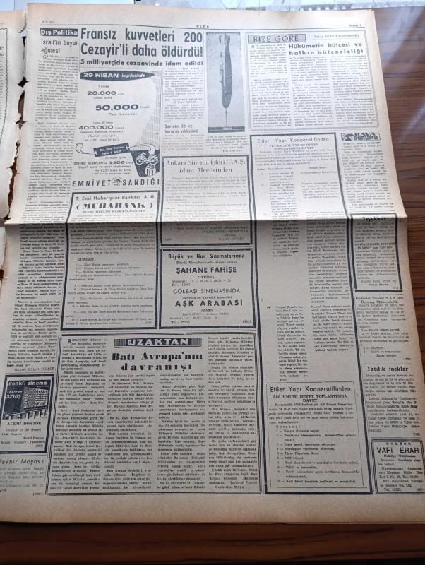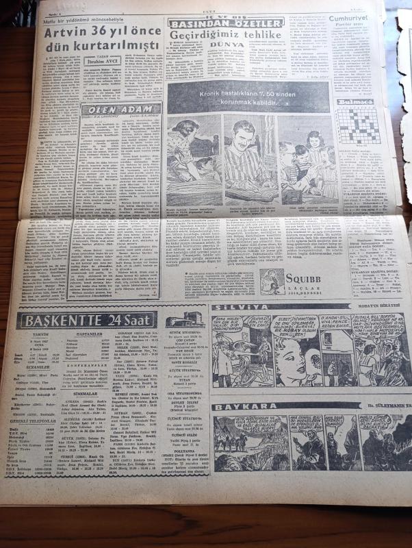 Ulus Gazetesi - 8 Mart 1957 - CHP Genel Başkanı İsmet İnönü İstanbul'da - Temsilciler Meclisinde Eisenhower Planı Tastik Edildi - E.O.K.A. İkinci Başkanı Gregoris Afxentu Dinamitle Nasıl Öldürüldü - İzmir Vapurunun Katili Hawel Lykes Amerika'ya Gidiyor - Gençlik Ve Fikir Ocaklarının Bir Seminerine İzin Verilmedi - İsrail Kuvvetleri Gazze'den Çekildi - Altıncı Filonun İstanbul'u Ziyareti - Devletkuşu Yazan Orhan Kemal Yazı Dizisi - Yeni Dünya Çizen Ferruh Doğan - Fransız Kuvvetleri 200 Cezayirli Daha Öldürdü - Yakup Kadri Karaosmanoğlu - Ahmet Şükrü Esmer - Senenin En Kuvvetli Komedisi Aşk Arabası Gölbaşı Sinemasında - Artvin 36 Yıl Önce Dün Kurtarılmıştı - Squibb İlaçları - Silviya Kobay'ın Hikayesi Çizgi Roman - Baykara Hz. Süleymanın Taşı - Barbara Hesse Bukowska'nın Konserleri - Yurdumuzun Medarı İftiharı Şahin Tekler Esenpark'ta - Sarı Kırmızı Takımlar Galatasaray Güneşspor Ve Göztepe'ye Nazar Mı Değdi - Vefa Stefan Kremen İsimli Bir Macar Mülteci İle Anlaştı - Sevim Tanürek adlı eser, Kitap > Süreli Yayınlar > Gazeteler > Türkiye > Genel > Günlük kategorisinde İkinci El olarak satıştadır.