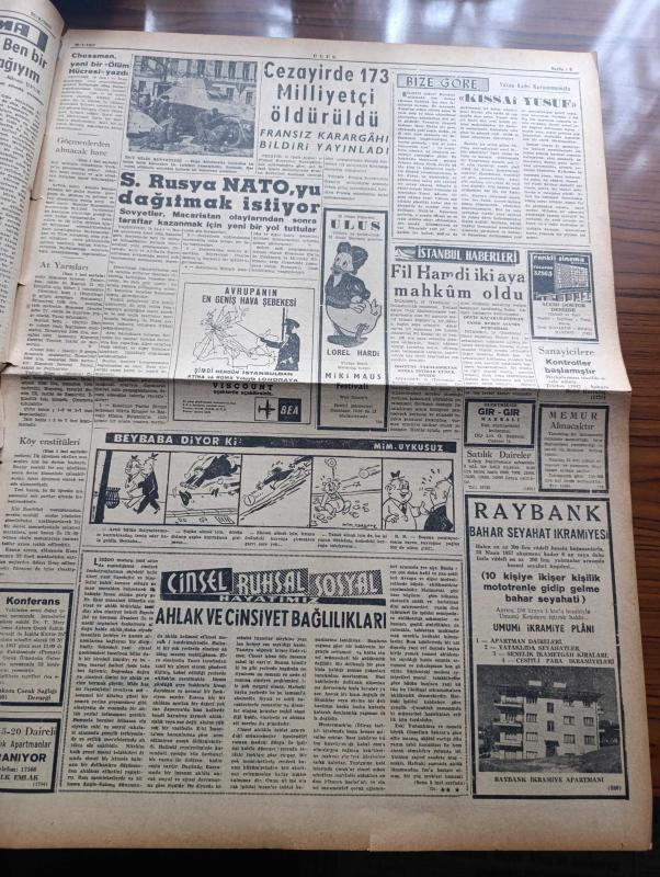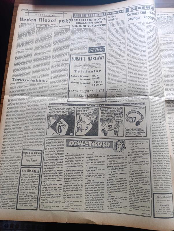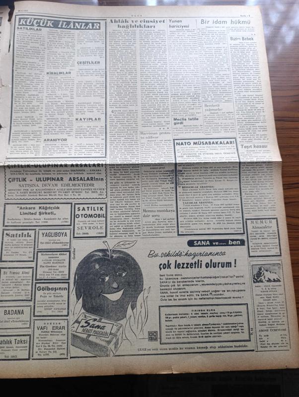 Ulus Gazetesi - Turkish Newspaper - 20 Nisan 1957 - Bir olgunlaşma eseri yazan Hüseyin Cahit Yalçın Başmakale - Yunan hariciyesi Adnan Menderes'in nutkunu inceledi - Afganistan başbakanı Altes Serdar Davut Han Afgan sefaretinde kabul resminde Kasım Gülekle fotoğraf - Türk Amerikan derneği mensupları iftar sofrasında Fotoğrafı - Daily Telegraph'ın Kıbrıs'a dair yazısı - köy enstitüleri ile öğretmen okullarında eşit şartlar - İzmir'de bugünkü at yarışları - inek Bayramı fotoğraf - Devlet kuşu yazan Orhan Kemal Yazı Dizisi - neden filozof yok yazan H. Nimetullah Öztürk - Sovyet Rusya NATO'yu dağıtmak istiyor - Kıssai Yusuf yazan Yakup Kadri Karaosmanoğlu - Ankara'da 24 saat sinema tiyatro programı - yasak aşk yazan W. Somerset Maugham Yazı - Merkez hakem komitesi üyesi Adnan Akın hakkında tahkikat açılacak - İstanbul'un çetin cevizi Beykoz Hacettepe ve Ankaragücü ile oynayacak - 23 Nisan boks Kupası - Garanti Bankası - kaleci Cemal noterden kaçırıldı - Uhu herşeyin mürekkebi adlı eser, Kitap > Süreli Yayınlar > Gazeteler > Türkiye > Genel > Günlük kategorisinde İkinci El olarak satıştadır.