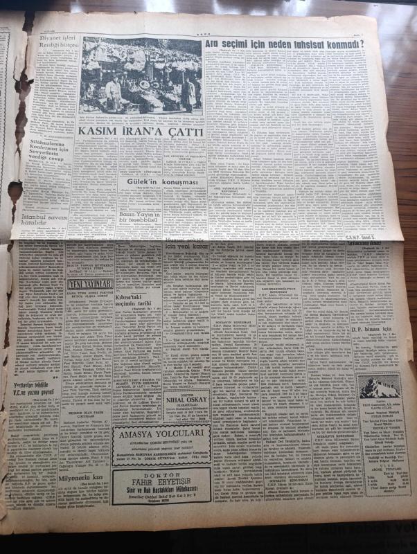 Ulus Gazetesi - Turkish Newspaper - 29 Aralık 1959 - diyanet İşleri reisliği bütçesi yazan Yakup Kadri Karaosmanoğlu Başmakale - Irak başbakanı General Kasım İran'a çattı - Arapça yazılan şişeler birçok gazino pavyon ve lokantalarda kullanılmaktadır fotoğraf - ara seçimi için bütçeye neden tahsisat konmadı - Selami Akpınar ve Naim Tirali için 4 ay mehil isteği reddedildi - yurttaşları tehditle Vatan Cephesine yazma gayreti - adalet bakanı istifa etmelidir yazan Bülent Ecevit - körler eğitimi ile ilgili sergi açıldı - kıbrıs'taki seçimin tarihi üzerinde anlaşmazlık var - kumsalda çeviren Bilge Karasu Yazı Dizisi - Diyarbakır Demokrat Parti teşkilatı içindeki huzursuzluk - içimizden ikisi yazan Emil Galip Sandalcı - pasif korunma dersi yerine CHP'ye küfür eden binbaşı Osman Nuri Dedeoğlu - acı sevda filmi başrolde Muhterem Nur ve Ahmet Tarık Tekçe Ulus sinemasında - şampiyon jokey Kazım Yıldız kupasının verilişini tenkit ediyor fotoğraf - mağlup edilmeyenler Beşiktaş - Ordu takımımız, Kasım Gülek tarafından kaleme alınmıştır. Ulus Gazetesi - Turkish Newspaper - 29 Aralık 1959 - diyanet İşleri reisliği bütçesi yazan Yakup Kadri Karaosmanoğlu Başmakale - Irak başbakanı General Kasım İran'a çattı - Arapça yazılan şişeler birçok gazino pavyon ve lokantalarda kullanılmaktadır fotoğraf - ara seçimi için bütçeye neden tahsisat konmadı - Selami Akpınar ve Naim Tirali için 4 ay mehil isteği reddedildi - yurttaşları tehditle Vatan Cephesine yazma gayreti - adalet bakanı istifa etmelidir yazan Bülent Ecevit - körler eğitimi ile ilgili sergi açıldı - kıbrıs'taki seçimin tarihi üzerinde anlaşmazlık var - kumsalda çeviren Bilge Karasu Yazı Dizisi - Diyarbakır Demokrat Parti teşkilatı içindeki huzursuzluk - içimizden ikisi yazan Emil Galip Sandalcı - pasif korunma dersi yerine CHP'ye küfür eden binbaşı Osman Nuri Dedeoğlu - acı sevda filmi başrolde Muhterem Nur ve Ahmet Tarık Tekçe Ulus sinemasında - şampiyon jokey Kazım Yıldız kupasının verilişini tenkit ediyor fotoğraf - mağlup edilmeyenler Beşiktaş - Ordu takımımız adlı eser Türkçe dilindedir.