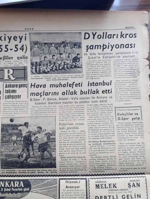 Ulus Gazetesi - Turkish Newspaper - 29 Ocak 1958 - Kıbrıs'ta 6 Türk öldürüldü - Kıbrıs Adası küçük bir Budapeşte halindedir - Kıbrıs'ta asker halkın üzerine ateş açıyor - Kıbrıs Türktür Partisi Genel sekreteri avukat Osman Örek - ellerinde bayraklar olduğu halde yürüyen Türklerin üzerine insafsızca ateş açıldı fotoğraf - Amerika Kara Kuvvetleri komutanı General Taylor Kore Sefiriyle fotoğraf - askeri planlama kurmayı kuruldu - teşkilatın başına Korgeneral Ekrem Akalın getirildi - Ankara'da Amerikan sefaretine atılan iki bomba hadisesi - Ege tütün piyasası açıldı - komisyonda CHP'nin tenkitleri telefon işlemez telgraf vaktinde alınmaz trendeki izdihamdan geçilmez - Başbakan Adnan Menderes'in kıbrıs'taki olaylar hakkında demeci - tıp fakültesinde bir profesör tehdit edildi - Vatan Yolunda Milli mücadele hatıraları yazan Yakup Kadri Karaosmanoğlu - niçin toplandılar yazan Bülent Ecevit - Bağdat Paktı ve İsrail yazan Ahmet Şükrü Esmer - Ankaragücü Mülkiyeyi 55 54 yendi - Fenerbahçe, Kasım Gülek tarafından kaleme alınmıştır. Ulus Gazetesi - Turkish Newspaper - 29 Ocak 1958 - Kıbrıs'ta 6 Türk öldürüldü - Kıbrıs Adası küçük bir Budapeşte halindedir - Kıbrıs'ta asker halkın üzerine ateş açıyor - Kıbrıs Türktür Partisi Genel sekreteri avukat Osman Örek - ellerinde bayraklar olduğu halde yürüyen Türklerin üzerine insafsızca ateş açıldı fotoğraf - Amerika Kara Kuvvetleri komutanı General Taylor Kore Sefiriyle fotoğraf - askeri planlama kurmayı kuruldu - teşkilatın başına Korgeneral Ekrem Akalın getirildi - Ankara'da Amerikan sefaretine atılan iki bomba hadisesi - Ege tütün piyasası açıldı - komisyonda CHP'nin tenkitleri telefon işlemez telgraf vaktinde alınmaz trendeki izdihamdan geçilmez - Başbakan Adnan Menderes'in kıbrıs'taki olaylar hakkında demeci - tıp fakültesinde bir profesör tehdit edildi - Vatan Yolunda Milli mücadele hatıraları yazan Yakup Kadri Karaosmanoğlu - niçin toplandılar yazan Bülent Ecevit - Bağdat Paktı ve İsrail yazan Ahmet Şükrü Esmer - Ankaragücü Mülkiyeyi 55 54 yendi - Fenerbahçe adlı eser Türkçe dilindedir.