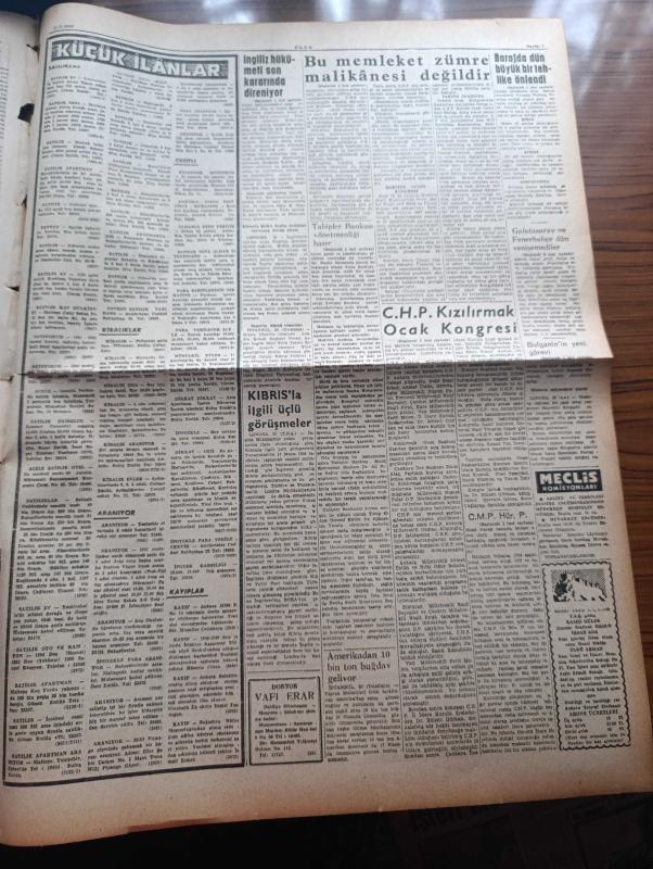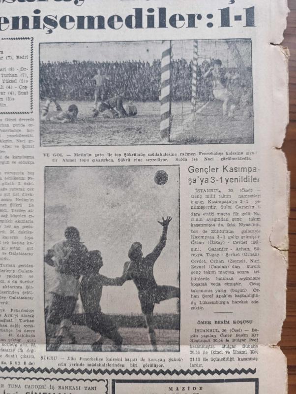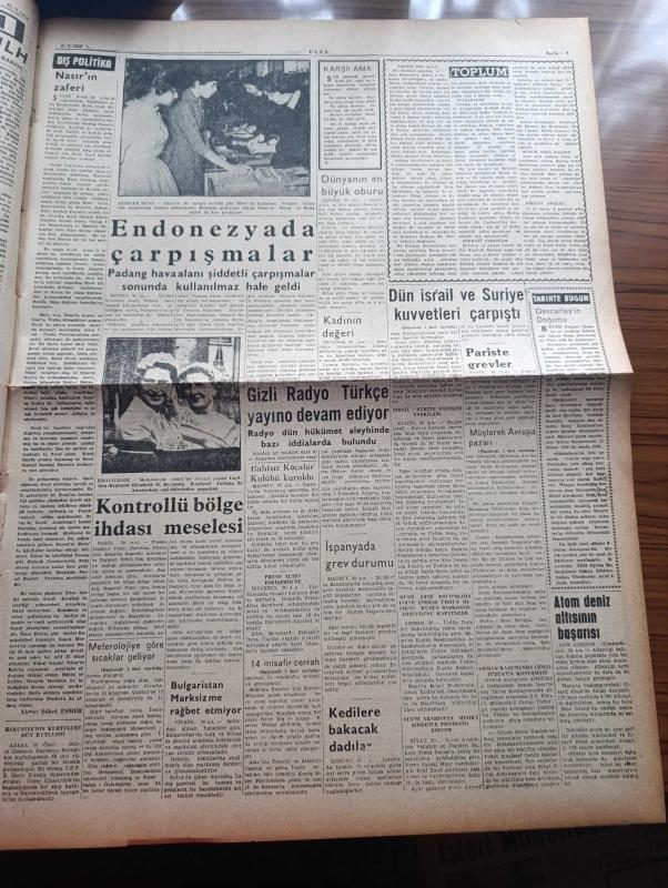 Ulus Gazetesi - Turkish Newspaper - 31 Mart 1958 - Çubuklu barajı'nda dün büyük Bir tehlike önlendi - Ankaragücü stadı'nda Galatasaray 1 Fenerbahçe 1 fotoğraf - İngiliz hükümeti son kararında direniyor Kıbrıs'ta Türk uçaklarına konan kayıtlar henüz kaldırılmadı - sendika başkanları toplanıyor - Bulganin'in yeni görevi - Tabipler Bankası yönetmeliği hazır - İsrail ve Suriye Kuvvetleri çarpıştı - Cumhuriyetçi Millet Partisi Hürriyet İle birleşmek istediğini açıkladı - Karapürçek yazan M. Sunullah Arısoy Yazı Dizisi - gizli Radyo Türkçe yayına devam ediyor - İspanya'da grev durumu - Ankara'da 24 saat sinema tiyatro programı - 12.000 meraklının 137.080 lira ödeyerek takip ettiği maç Galatasaray Fenerbahçe - Metin Oktay'ın golü fotoğraf - Fenerbahçe kalecisi Şükrü'nün müdahalesi fotoğraf - Türkiye basket şampiyonasında Fenerbahçe ve Galatasaray Galip - Ömer Besim koşusu - Gençlerbirliği kasımpaşa'ya 3-1 yenildi - evlat filmi Dörtyol Melek ve Dışkapı şan sinemasında - Raybank adlı eser, Kitap > Süreli Yayınlar > Gazeteler > Türkiye > Genel > Günlük kategorisinde İkinci El olarak satıştadır.