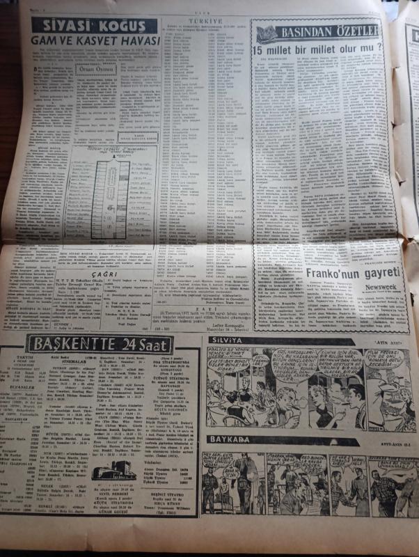 Ulus Gazetesi - Turkish Newspaper - 4 Ocak 1958 - İşçi Partisi gölge bakanı George Brown'un basın toplantısı Kıbrıs'ı taksim makul hal çaresi değildir - İşçi Partisi gölge bakanı George Brown Kasım Gülek'in evinden ayrılırken fotoğraf - Türkiye'de Kıbrıs çalışmaları - Fransızlar Tunus topraklarına girdi - Osman Bölükbaşı duruşmasına gelmedi - 29 yıl sonra Güney kutbuna ilk defa olarak gidildi - Ankara gazeteciler sendikasının balo hazırlığı fotoğraf - Shakespeare'in ünlü eseri ile canlanan veronalı aşık Juliet'in mezarı fotoğraf - Vatan Yolunda Milli mücadele hatıraları yazan Yakup Kadri Karaosmanoğlu Yazı Dizisi - Markizde Sevignenin kehaneti yazan Leyla Çambel - Kara tahtada ak yazı Hürriyet yazan Oktay Verel - Kıbrıs ve İşçi Partisi Yarın Ahmet Şükrü Esmer - Doğu çikolata fabrikası açıldı - siyasi koğuş yazan Örsan Öymen - Ankara İstanbul Radyosu Programı - futbol liginde 2. Devre başlıyor - Demirsporlar serbest güreş şampiyonası bugün saat 19.00'da başlayacak - Fenerbahçe basketbol adlı eser, Kitap > Süreli Yayınlar > Gazeteler > Türkiye > Genel > Günlük kategorisinde İkinci El olarak satıştadır.
