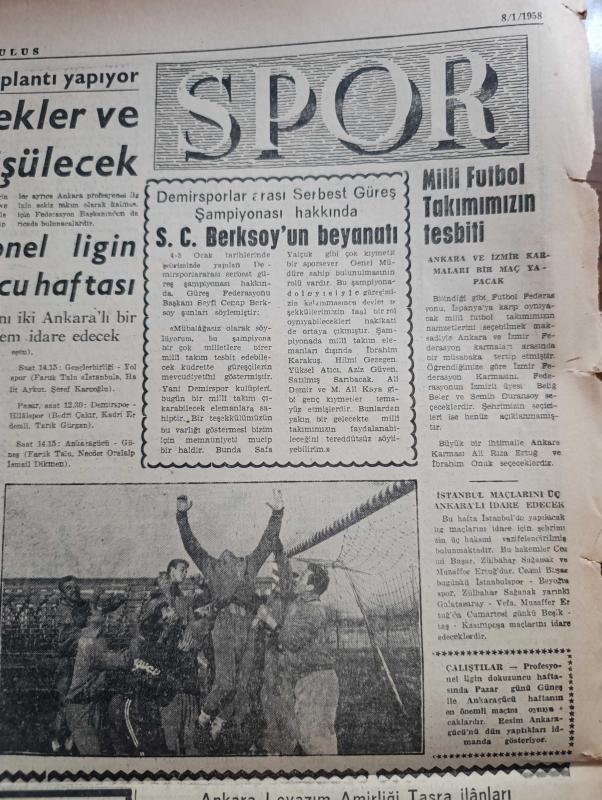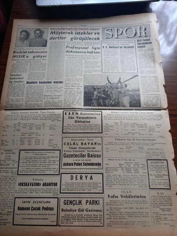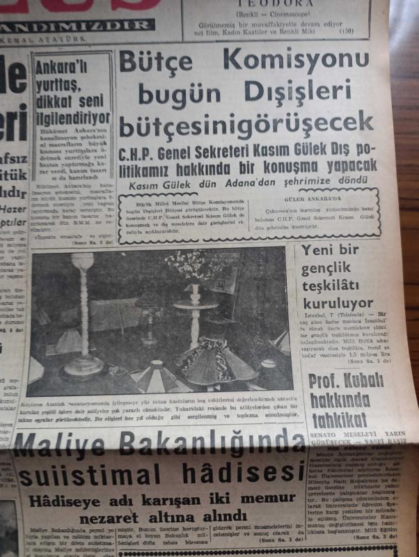 Ulus Gazetesi - Turkish Newspaper - 8 Ocak 1958 - İçişleri bütçesinde CHP'nin tenkitleri - Profesör Hüseyin Nail Kubalının üniversitede dün yaptığı konuşma - Bütçe komisyonu bugün Dışişleri bütçesini görüşecek - yeni bir gençlik teşkilatı kuruluyor - Profesör Hüseyin Nail Kubalı hakkında tahkikat - maliye bakanlığında suistimal hadisesi - Hürriyet Partisi'nin bildirisi iktidar muhalefeti sindirmek istiyor - İngiliz başbakanı Mac Millan Kıbrıs'a uğradı - NATO kumandanı Paul D. Harkins türkçe öğreniyor fotoğraf - yedek parça ve lastik sıkıntısı had safhada - Romanya Cumhurbaşkanı Petru Groza öldü - Vatan Yolunda Milli mücadele hatıraları yazan Yakup Kadri Karaosmanoğlu Yazı Dizisi - boşuna emek yazan Bülent Ecevit - Amerika ve Bağdat Paktı yazan Ahmet Şükrü Esmer - Ankara'da 24 saat sinema tiyatro programı - Ankara İstanbul Radyosu Programı - Ankara birinci ligi'nin 8 takımı bugün bir toplantı yapıyor - Mısır'a gidecek olan bisiklet milli ekibimizden Aytekin İpek ve Mustafa Palaska foto, Kasım Gülek tarafından kaleme alınmıştır. Ulus Gazetesi - Turkish Newspaper - 8 Ocak 1958 - İçişleri bütçesinde CHP'nin tenkitleri - Profesör Hüseyin Nail Kubalının üniversitede dün yaptığı konuşma - Bütçe komisyonu bugün Dışişleri bütçesini görüşecek - yeni bir gençlik teşkilatı kuruluyor - Profesör Hüseyin Nail Kubalı hakkında tahkikat - maliye bakanlığında suistimal hadisesi - Hürriyet Partisi'nin bildirisi iktidar muhalefeti sindirmek istiyor - İngiliz başbakanı Mac Millan Kıbrıs'a uğradı - NATO kumandanı Paul D. Harkins türkçe öğreniyor fotoğraf - yedek parça ve lastik sıkıntısı had safhada - Romanya Cumhurbaşkanı Petru Groza öldü - Vatan Yolunda Milli mücadele hatıraları yazan Yakup Kadri Karaosmanoğlu Yazı Dizisi - boşuna emek yazan Bülent Ecevit - Amerika ve Bağdat Paktı yazan Ahmet Şükrü Esmer - Ankara'da 24 saat sinema tiyatro programı - Ankara İstanbul Radyosu Programı - Ankara birinci ligi'nin 8 takımı bugün bir toplantı yapıyor - Mısır'a gidecek olan bisiklet milli ekibimizden Aytekin İpek ve Mustafa Palaska foto adlı eser Türkçe dilindedir.