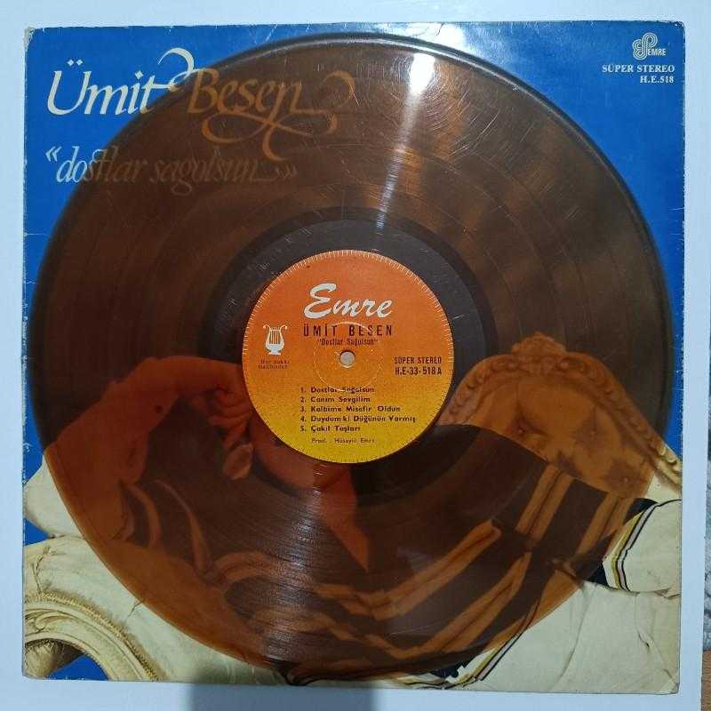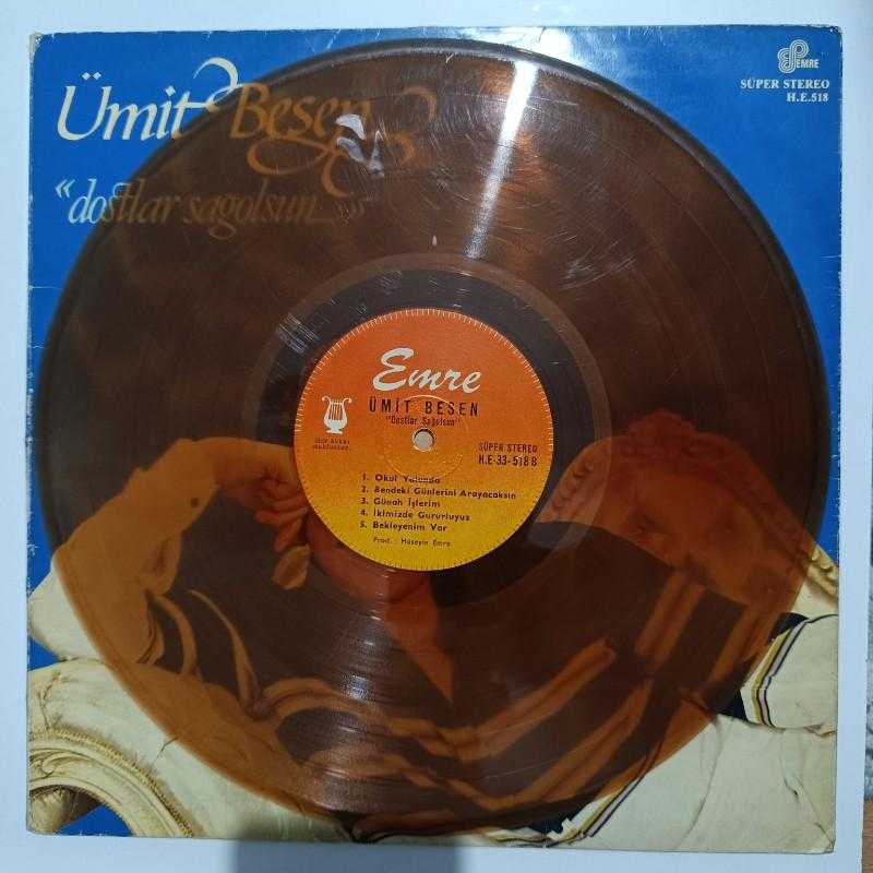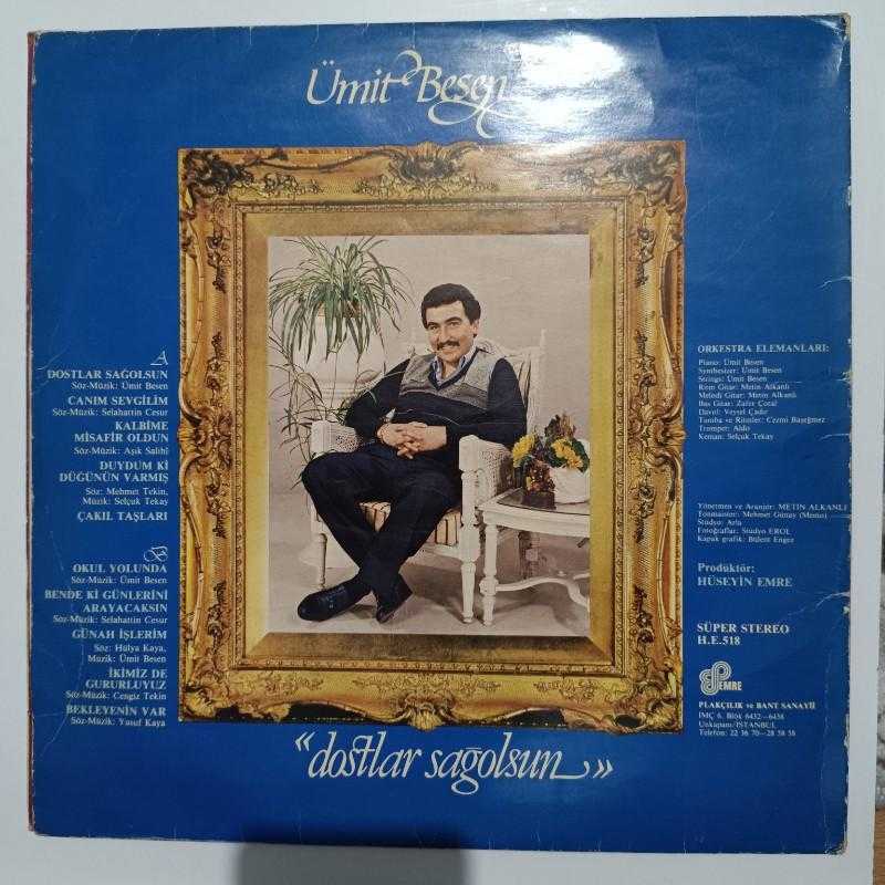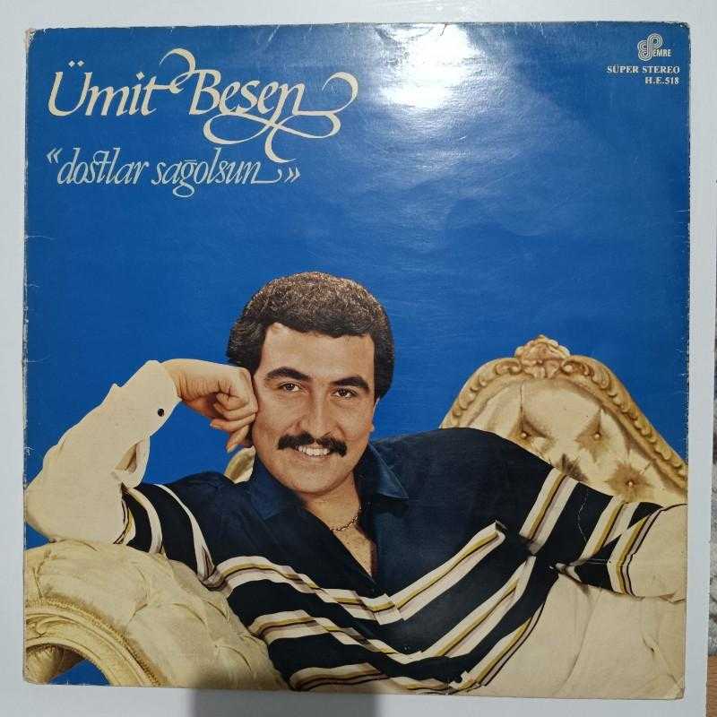 şarkıcı/grup- Ümit BESEN şarkılar -Dostlar sağolsun ALBÜMÜ tür -FANTAZİ/ARABESK baskı/press -1983 plak -A7,5-B7/10 kapak -7,5-8/10 MPN no -HE-33-518 bilgi -