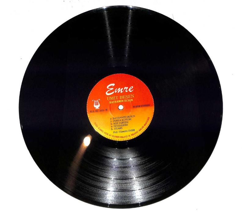 Plak Kondisyonu : 10/8.5 Plak Kapağı: Mevcut 10/7 * Tüm ürünlerimiz orijinaldir. Yeni baskı plağımız yoktur. * Çoğu ürünümüz dinlenmiştir fakat satın almadan önce atlama, takılma olup olmadığını lütfen teyit ediniz. 1980’lerde arabesk müziğin en önemli isimlerinden Ümit Besen, “Bayramın Olsun” albümüyle dönemin en çok dinlenen sanatçılarından biri olmuştur. Duygusal sözleri ve güçlü yorumuyla hafızalara kazınan bu albüm, sanatçının kariyerindeki en bilinen eserlerden bazılarını barındırır. Albümde; “Nikâh Masası”, “Unutulmuşum”, “Zahmet Olmazsa”, “Bayramın Olsun” gibi Ümit Besen’in klasikleşmiş şarkıları yer alır. ? Plak Özellikleri: Plak Şirketi: Emre Plak Katalog No: H.E. – 33 – 513 Format: 33’lük / LP – Super Stereo Yıl: 1980’ler Prodüktör: Hüseyin Emre ? Parça Listesi: A Yüzü Nikâh Masası Unutulmuşum Zahmet Olmazsa Yakında Geleceğim Sigarası Yaldızlı B Yüzü Bayramın Olsun Posta Kutusu Söz Verdım Diyemedim Avare PLAK KONDİSYON DEĞERLENDİRME TABLOSU (10/10) YENİ PLAK — SS (Still Sealed) Sıfır, ambalajında plaklar için kullanılır.Sadece ambalajı açılıp plağa iğne değmezse M (Mint) dir. (10/9) ÇOK İTİNALI KULLANILMIŞ PLAK — NM ( Near Mint ) Ambalajı açılmış fakat kapak, iç zarf ve plak en ufak bir deformasyon geçirmemiştir. Plak çok az çalınmıştır. (10/8.5) YENİYE YAKIN PLAK — EX (Excellent)Plak hemen hemen yeniye yakın durumdadır.Az derecede kullanılmışlık belirtileri bulunur. Plak yüzeyinde hafif yüzeysel izler mevcut olabilir ama ses kalitesi kesinlikle Kondisyon : Çok İyidır. (10/8) – MÜKEMMEL — VG+ (Very Good Plus) Plak yüzeyinde bir kaç adet çok hafif yüzeysel izler mevcut olabilir ama ses kalitesi çok iyiye yakın durumdadır. Kapakta çeşitli aşınmalar ve hafif bükülmeler olabilir ama herhangi bir yırtık veya eksik yoktur. (10/7.5, 7) – ÇOK İYİ — VG (Very Good ) Plak bir çok kez çalınmış durumdadır ve plak yüzeyinde fazla sayıda yüzeysel izler mevcut olabilir. Ses kalitesi çok az miktarda bozulmuş olabilir, yüzey gürültüsü mevcut olabilir. Parlaklık hafifçe kaybolmuştur. Kapakta çeşitli aşınmalar ve bükülmeler olabilir. (10/6.5, 6) -İYİ — G (Good)Plak oldukça fazla sıklıkta çalınmış durumdadır ve plak yüzeyinde oldukça fazla sayıda gözle görülebilir derecede izler mevcut olabilir. Ses kalitesi oldukça bozulmuş olabilir, bariz yüzey gürültüsü mevcut olabilir. Ama yine de atlama olmadan dinlenebilir durumdadır. Plak izi çok belirgindir ve kapakta çeşitli bükülmeler ve yırtıklar vardır. (10/5.5) -VASAT — P (Poor ) Plak oldukça yıpranmış durumdadır. Yamukluk, çatlak, kırık ve çok derin çizikler olabilir. Bazı noktalarda atlama yapabilir. Kapakta yırtık, eksik parça, rutubet izleri ya da başka kötü izler mevcut olabilir. Bu durumdaki plakları müşteri istediği için koleksiyonluk olarak satışa sunmaktayız. O yüzden aldığınız ürünün sadece koleksiyona katmak için olduğunu göz önünde bulundurup lütfen sesinden iyi bir derecelendirme beklemeyiniz.