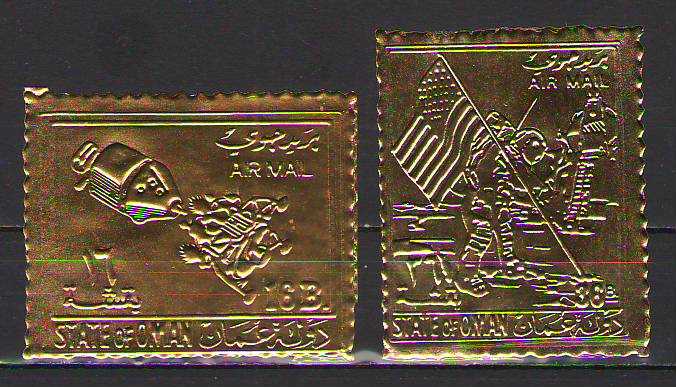 Umm Al Kwain - 1972 Uzay ve Aya iniş temalı 2 adet altın pul - MNH - Damgasız, dün satışa sunulmuştur.