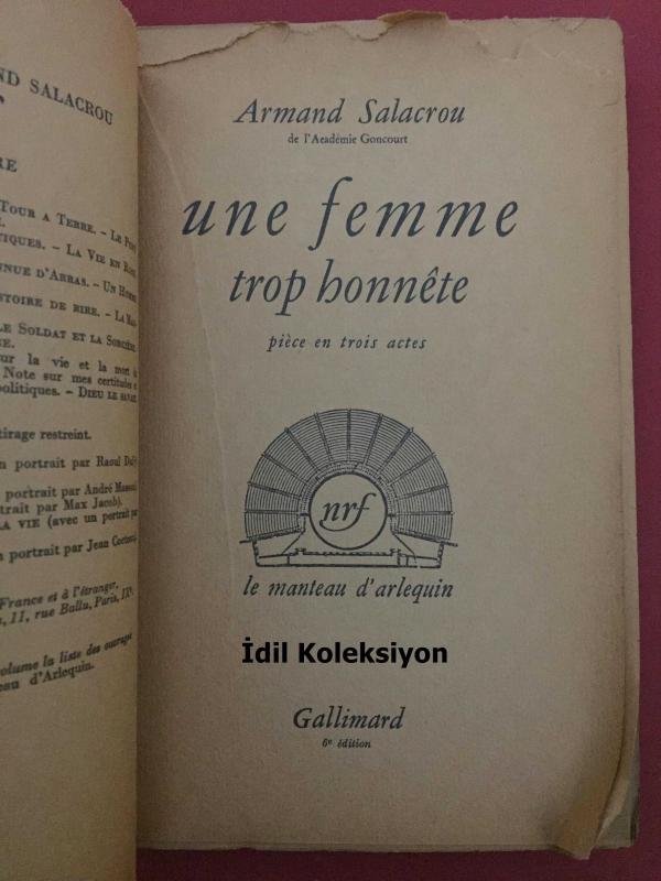 Une Femme Trop Bonnete - Armand Salacrou - Librairie Gallimard (Çok İyi Bir Kadın) Fransızca Kitap adlı eser, Kitap > Edebiyat, Kurgu kategorisinde İkinci El olarak satıştadır.