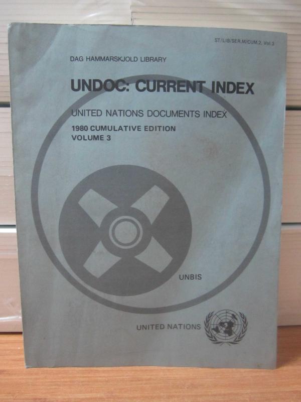 Kitap 1981 yılında Birleşmiş Milletler UNDOC: Güncel Dizin - Cilt 3 - 1980 Kümülatif Baskı - Dag Hammarskjold Kütüphanesi tarafından yayınlanmıştır. 314 sayfadır. United Nations UNDOC: Current Index - Volume 3 - 1980 Cumulative Edition - Dag Hammarskjold Library adlı eser İngilizce dilindedir.