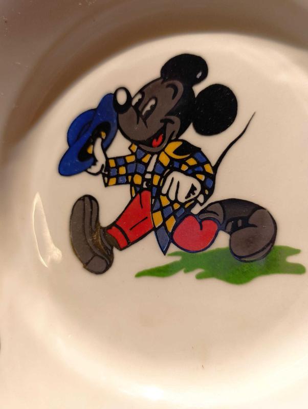Üretim hatası! Gri boyanmış miki fare desenli porselen çocuk yemek tabağı başlıklı antika/koleksiyon objesi Avrupa menşe’lidir. Objenin ait olduğu dönem bilinmeketedir.