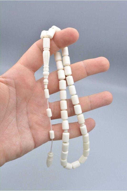 Renk: Beyaz Usta İşi Sistemli Beyzi Kesim İri Boy Deve Kemiği Tesbih 1.Kalite Orijinal Doğal Deve Kemiği Deve kemiği tesbihimiz takımlı sistemlidir. Deve kemiği tesbihimiz günlük çekime uygundur. Deve kemiği tesbihimizin ölçüleri: Tane Ebadı: 8*11 MM İmame Boy: 4.4 CM Toplam Boy: 35 CM Ağırlık: 36 Gram Deve kemiği tesbihin özellikleri: Doğal malzeme olduğu için hafif bir kokuya sahip olabilir. Kullandıkça zamanla sararmaya başlar. Ağır olmayan yapısı ile çekimi oldukça keyiflidir. Dayanıklı ve sert bir yapıya sahiptir. Ürünlerimiz doğal olduğu için renk tonlarında küçük farklılıklar olabilir. Tesbihlerde püskül modelleri stok durumuna göre farklılık gösterebilir.