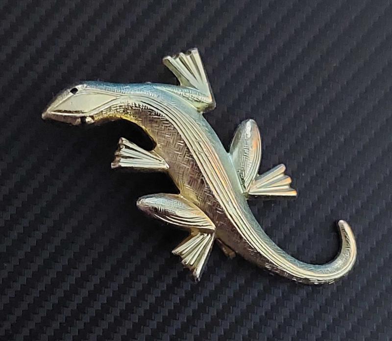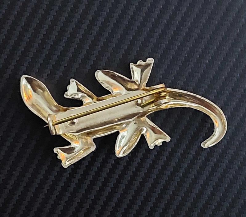 Uzak Doğu, Kertenkele Temalı Broş. Minik, Sevimli Bir Tasarım. Altın Tonlu Dokulu Metal Gövde. Sırtı Yeşil Degrade Olarak Renklendirilmiş Olup, Gözleri Minik Kırmızı Taşla Bezenmiştir. 2000'ler (40x13 mm), bir ay önce kitantik’te satışa sunulmuştur.