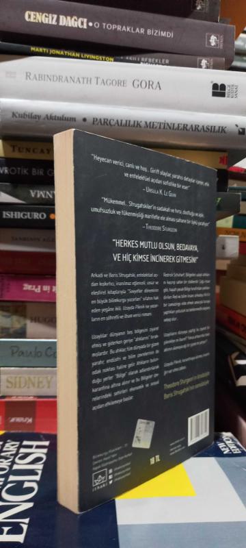 “Heyecan verici, canlı ve hoş... Girift olaylar, yaratıcı detaylar içeren, etik ve entelektüel açıdan sofistike bir eser.” –Ursula K. Le Guin “Mükemmel… Strugatskiler’in sadakati ve hırsı, dostluğu ve aşkı, umutsuzluk ve tükenmişliği marifetli ve yetenekli şekilde ele alması ortaya şahane bir hikâye çıkarıyor. Yıllarca unutulmayacak bir kitap.” –Thedore Sturgeon Arkadi ve Boris Strugatski, entelektüel açıdan kışkırtıcı, inanılmaz eğlenceli, cesur ve eleştirel kitaplarıyla “Sovyetler döneminin en büyük bilimkurgu yazarları” sıfatını hak eden yegâne ikili. Uzayda Piknik ise yazarların en ünlü ve ilham verici romanı. Uzaylılar dünyanın beş bölgesini ziyaret etmiş ve giderken geriye “atıklarını” bırakmışlardır. Bu atıklar, tüm dünyada bir gizem yaratır ve endüstri ve bilim çevrelerinin de odak noktası haline gelir. Atıkların bulunduğu yerler “bölge” olarak adlandırılarak karantina altına alınır ve bu bölgeler çevrelerindeki şehirleri ekonomik ve sosyal açıdan etkilemeye başlar