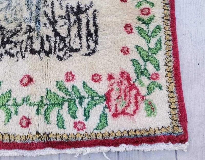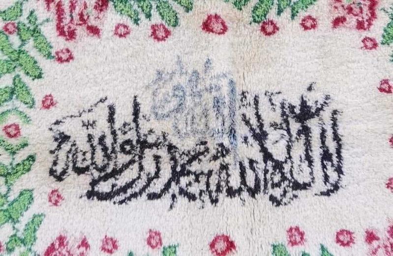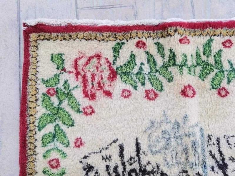 Üzerinde Kelime-i Tevhid yazılı eski Isparta işi el dokuma duvar halısı., en son 2 ay önce güncellenmiştir.
