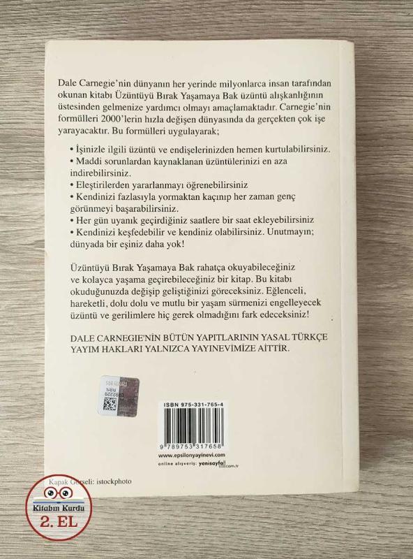Üzüntüyü Bırak Yaşamaya Bak (2. El), Dale Carnegie tarafından kaleme alınmıştır. Kitap 2013 yılında Epsilon Yayınları tarafından 975331765-4 ISBN kodu ile yayınlanmıştır. Satışta olan kitap, yayınevinin 1. baskısıdır. Bu baskının çevirisi Meltem Erkmen tarafından yapılmıştır. 200 sayfadır. Sayfa bilgisi 2. Hamur olarak belirtilmiştir. Üzüntüyü Bırak Yaşamaya Bak (2. El) adlı eser Türkçe dilindedir.