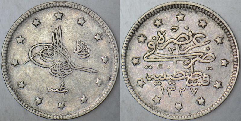V. MEHMED REŞAD GÜMÜŞ 2 KURUŞ 1327/4 KOSTANTİNİYYE DARBI. OSMANLI İMPARATORLUĞU., 23 gün önce satışa sunulmuştur.