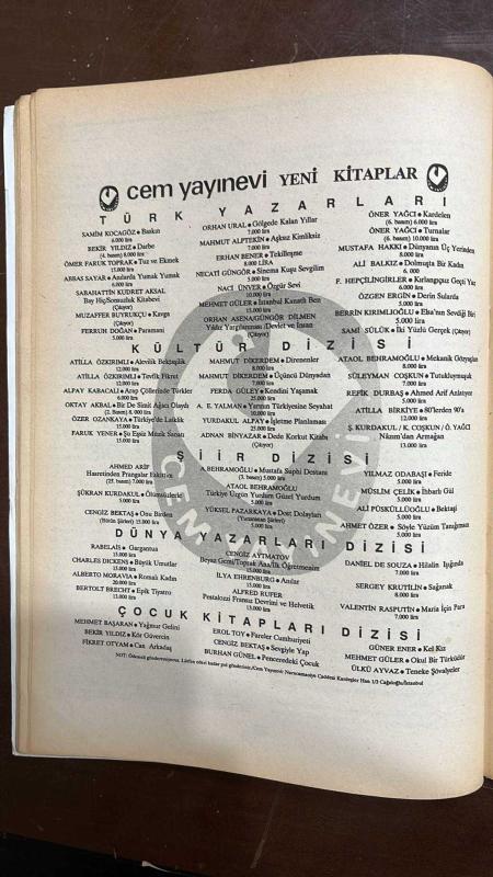 VARLIK EDİBİYAT VE SANAT DERGİSİ - SAYI: 1000 TARİH: OCAK 1991 YAŞAR NABI NAYIR - CEMAL SÜREYA - ALTAY ÖKTEM - MURAT YALÇIN - BİLGE KARASU - TURGUT UYAR - EDİP CANSEVER - NÂZIM HİKMET - BEHÇET NECATİGİL - KEMAL ÖZER - CEYHUN ATUF KANSU - ECE AYHAN SAYI GENÇLİK ÖDÜLLERİ - ÖLÜM YILDÖNÜMÜNDE CEMAL SÜREYA - ASYA AFRİKA YAZARLAR BİRLİĞİ TOPLANTISINDAN İZLENİMLER - KIRMIZI TÜYÜN DÜŞÜŞÜ - ŞİİRİ HAYATIN İÇİNDE YEŞERTMEK - KILAVUZ - GECE - GÖÇMÜŞ KEDİLER BAHÇESİ KIRMIZI TÜYÜN DÜŞÜŞÜ HİKAYESİ YAZAN : ALTAY ÖKTEM ŞİİRİ HAYATIN İÇİNDE YEŞERTMEK HİKAYESİ YAZAN : ALTAY ÖKTEM KILAVUZ HİKAYESİ YAZAN : BİLGE KARASU - 34 SAYFA adlı eser, Kitap > Süreli Yayınlar > Dergiler > Magazin, Moda kategorisinde İkinci El olarak satıştadır.