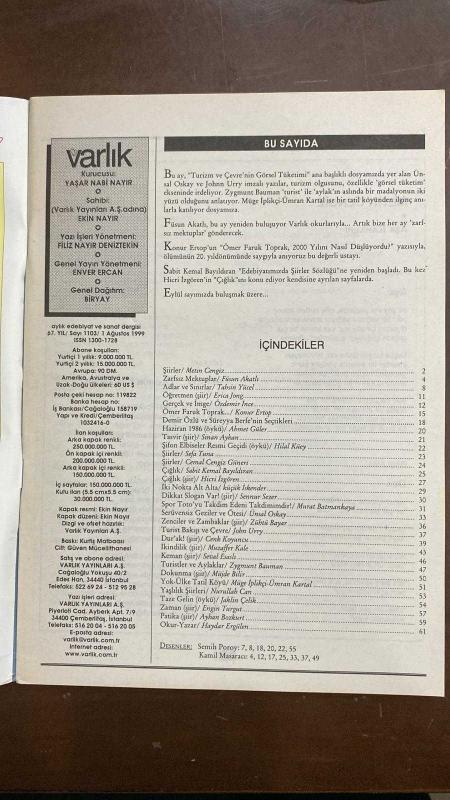 VARLIK EDİBİYAT VE SANAT DERGİSİ - SAYI: 1103 - AĞUSTOS 1999 - FÜSUN AKATLI – NAİM DİLMENER – METİN CENGİZ – HİKMET ULUĞBAY – A.H. TANPINAR – SOPHIE – GUSTAVE FLAUBERT – JEAN-JACQUES ROUSSEAU - FÜSUN AKATLI – NAİM DİLMENER – METİN CENGİZ – A.H. TANPINAR – SOPHIE – GUSTAVE FLAUBERT – JEAN-JACQUES ROUSSEAU - YAŞAR NABI NAYIR – EKİN NAYIR – FİLİZ NAYIR DENİZTEKİN – ENVER ERCAN – FÜSUN AKATLI – METİN CENGİZ – TAHSiN YÜCEL – ÖZDEMİR İNCE – ERICA JONG – KONUR ERTOP – SABİT KEMAL BAYILDIRAN – HİCRİ İZGÖREN – DEMİR ÖZLÜ – SÜREYYA BERFE – HAYDAR ERGÜLEN – MUZAFFER BUYRUKÇU – KARİN KARAKAŞLI – SULHİ DÖLEK – NAİM DİLMENER – ZYGMUNT BAUMAN – JOHN URRY – ÜNSAL OSKAY – MÜGE İPLİKÇİ – ÜMRAN KARTAL – CEMAL CENGİZ GÜNERİ – KÜÇÜK İSKENDER – SENNUR SEZER – AHMET GÜLER – HİLAL KÜEY – MURAT BATMANKAYA – ZÜHTÜ BAYAR – CENK KOYUNCU – MUZAFFER KALE – SEVAL ESASLI – NURULLAH CAN – JAKLİN ÇELİK – ENGİN TURGUT – VARLIK – KİTAP EKİ – ZARFSIZ MEKTUPLAR – T - 64 SAYFA, YAŞAR NBİ NAYIR tarafından kaleme alınmıştır. Kitap EKİN BASIM EVİ tarafından yayınlanmıştır. 64 sayfadır. VARLIK EDİBİYAT VE SANAT DERGİSİ - SAYI: 1103 - AĞUSTOS 1999 - FÜSUN AKATLI – NAİM DİLMENER – METİN CENGİZ – HİKMET ULUĞBAY – A.H. TANPINAR – SOPHIE – GUSTAVE FLAUBERT – JEAN-JACQUES ROUSSEAU - FÜSUN AKATLI – NAİM DİLMENER – METİN CENGİZ – A.H. TANPINAR – SOPHIE – GUSTAVE FLAUBERT – JEAN-JACQUES ROUSSEAU - YAŞAR NABI NAYIR – EKİN NAYIR – FİLİZ NAYIR DENİZTEKİN – ENVER ERCAN – FÜSUN AKATLI – METİN CENGİZ – TAHSiN YÜCEL – ÖZDEMİR İNCE – ERICA JONG – KONUR ERTOP – SABİT KEMAL BAYILDIRAN – HİCRİ İZGÖREN – DEMİR ÖZLÜ – SÜREYYA BERFE – HAYDAR ERGÜLEN – MUZAFFER BUYRUKÇU – KARİN KARAKAŞLI – SULHİ DÖLEK – NAİM DİLMENER – ZYGMUNT BAUMAN – JOHN URRY – ÜNSAL OSKAY – MÜGE İPLİKÇİ – ÜMRAN KARTAL – CEMAL CENGİZ GÜNERİ – KÜÇÜK İSKENDER – SENNUR SEZER – AHMET GÜLER – HİLAL KÜEY – MURAT BATMANKAYA – ZÜHTÜ BAYAR – CENK KOYUNCU – MUZAFFER KALE – SEVAL ESASLI – NURULLAH CAN – JAKLİN ÇELİK – ENGİN TURGUT – VARLIK – KİTAP EKİ – ZARFSIZ MEKTUPLAR – T - 64 SAYFA adlı eser Türkçe dilindedir.