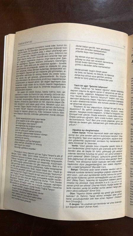VARLIK EDİBİYAT VE SANAT DERGİSİ - SAYI: 1105 — TARİH: EKİM 1999 - YAŞAR NABI NAYIR – FÜSUN AKATLI – ZEKİ SELİMOĞLU – ORHAN PAMUK – ÖZDEMİR İNCE – MÜGE İPLİKÇİ – ÜMİT KARTAL – HAYDAR ERGÜLEN – JACK LONDON – SELİM İLERİ – CAN YÜCEL – KONUR ERTOP – MURATHAN MUNGAN – ORHAN DURU – ATTİLÂ İLHAN – ELIAS CANETTI – SUSAN SONTAG – MUZAFFER BUYRUKÇU – RECAİZADE MAHMUT EKREM – NAMIK KEMAL – NABİZADE NÂZIM – AHMET MİTHAT EFENDİ – REŞAT NURİ GÜNTEKİN – MUSTAFA NİHAT ÖZÖN - VARLIK – KİTAP EKİ – DEPREM – TÜRK ROMANINDA KADIN PORTRELERİ – CAN YÜCEL DOSYASI – MURATHAN MUNGAN’LA SÖYLEŞİ – HANGİ ATTİLÂ İLHAN? – ELIAS CANETTI ÜZERİNE – YÜZYIL DÖNÜMÜNDE ROMAN – KADIN TEMSİLLERİ – KISKANÇLIK VE YIKIM – KADINLIK ARZULARI – VİCTORİA AHLAKI – ROMANDA FAHİŞE KİMLİĞİ – ARABA SEVDASI – ZEHRA – HENÜZ ON YEDİ YAŞINDA – İNTİBAH – SERGÜZEŞT – DİLÂŞUP – PERİVEŞ – KALYOPİ – BİHRUZ – ALİ BEY – DİLRUBA – KADININ TOPLUMSAL KONUMU - TÜRK ROMANINDA KADIN PORTRELERİ, YAZAN : SELİM İLERİ - 64 SAYFA, YAŞAR NBİ NAYIR tarafından kaleme alınmıştır. Kitap EKİN BASIM EVİ tarafından yayınlanmıştır. 64 sayfadır. VARLIK EDİBİYAT VE SANAT DERGİSİ - SAYI: 1105 — TARİH: EKİM 1999 - YAŞAR NABI NAYIR – FÜSUN AKATLI – ZEKİ SELİMOĞLU – ORHAN PAMUK – ÖZDEMİR İNCE – MÜGE İPLİKÇİ – ÜMİT KARTAL – HAYDAR ERGÜLEN – JACK LONDON – SELİM İLERİ – CAN YÜCEL – KONUR ERTOP – MURATHAN MUNGAN – ORHAN DURU – ATTİLÂ İLHAN – ELIAS CANETTI – SUSAN SONTAG – MUZAFFER BUYRUKÇU – RECAİZADE MAHMUT EKREM – NAMIK KEMAL – NABİZADE NÂZIM – AHMET MİTHAT EFENDİ – REŞAT NURİ GÜNTEKİN – MUSTAFA NİHAT ÖZÖN - VARLIK – KİTAP EKİ – DEPREM – TÜRK ROMANINDA KADIN PORTRELERİ – CAN YÜCEL DOSYASI – MURATHAN MUNGAN’LA SÖYLEŞİ – HANGİ ATTİLÂ İLHAN? – ELIAS CANETTI ÜZERİNE – YÜZYIL DÖNÜMÜNDE ROMAN – KADIN TEMSİLLERİ – KISKANÇLIK VE YIKIM – KADINLIK ARZULARI – VİCTORİA AHLAKI – ROMANDA FAHİŞE KİMLİĞİ – ARABA SEVDASI – ZEHRA – HENÜZ ON YEDİ YAŞINDA – İNTİBAH – SERGÜZEŞT – DİLÂŞUP – PERİVEŞ – KALYOPİ – BİHRUZ – ALİ BEY – DİLRUBA – KADININ TOPLUMSAL KONUMU - TÜRK ROMANINDA KADIN PORTRELERİ, YAZAN : SELİM İLERİ - 64 SAYFA adlı eser Türkçe dilindedir.