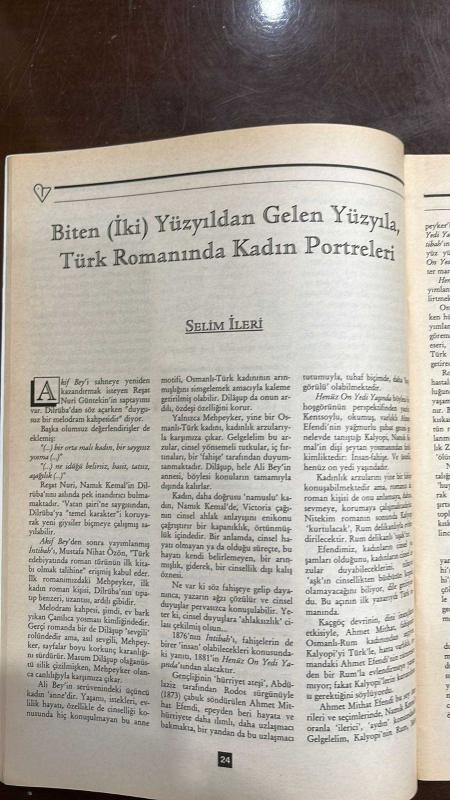 VARLIK EDİBİYAT VE SANAT DERGİSİ - SAYI: 1105 — TARİH: EKİM 1999 - YAŞAR NABI NAYIR – FÜSUN AKATLI – ZEKİ SELİMOĞLU – ORHAN PAMUK – ÖZDEMİR İNCE – MÜGE İPLİKÇİ – ÜMİT KARTAL – HAYDAR ERGÜLEN – JACK LONDON – SELİM İLERİ – CAN YÜCEL – KONUR ERTOP – MURATHAN MUNGAN – ORHAN DURU – ATTİLÂ İLHAN – ELIAS CANETTI – SUSAN SONTAG – MUZAFFER BUYRUKÇU – RECAİZADE MAHMUT EKREM – NAMIK KEMAL – NABİZADE NÂZIM – AHMET MİTHAT EFENDİ – REŞAT NURİ GÜNTEKİN – MUSTAFA NİHAT ÖZÖN - VARLIK – KİTAP EKİ – DEPREM – TÜRK ROMANINDA KADIN PORTRELERİ – CAN YÜCEL DOSYASI – MURATHAN MUNGAN’LA SÖYLEŞİ – HANGİ ATTİLÂ İLHAN? – ELIAS CANETTI ÜZERİNE – YÜZYIL DÖNÜMÜNDE ROMAN – KADIN TEMSİLLERİ – KISKANÇLIK VE YIKIM – KADINLIK ARZULARI – VİCTORİA AHLAKI – ROMANDA FAHİŞE KİMLİĞİ – ARABA SEVDASI – ZEHRA – HENÜZ ON YEDİ YAŞINDA – İNTİBAH – SERGÜZEŞT – DİLÂŞUP – PERİVEŞ – KALYOPİ – BİHRUZ – ALİ BEY – DİLRUBA – KADININ TOPLUMSAL KONUMU - TÜRK ROMANINDA KADIN PORTRELERİ, YAZAN : SELİM İLERİ - 64 SAYFA