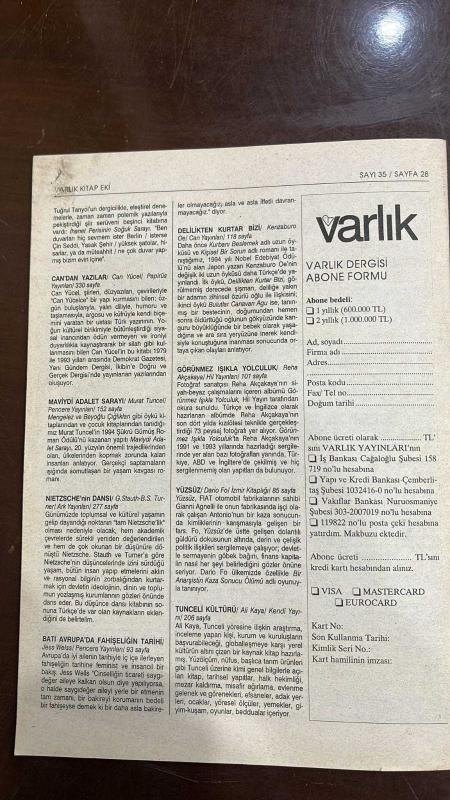 VARLIK EDİBİYAT VE SANAT DERGİSİ - SAYI: 35 — TARİH: NİSAN 1995 - GEOFFREY CHAUCER - ADNAN ÖZYALÇINER - ABDÜLHAK ŞİNASİ HİSAR - DENİZ KIZI EFTELYA - HAZIM (ŞEHİR TİYATROSU) - HALDUN SİMAVİ - CEMAL SÜREYA - VARLIK - KİTAP EKİ - CANTERBURY HİKÂYELERİ - ŞİRKET-İ HAYRİYE - BOĞAZİÇİ'NDE MEHTAP ÂLEMLERİ - VAPUR SEFERLERİ - HALÂS VAPURU - BOĞAZ’IN KENTLEŞME SERÜVENİ - ŞİİRDE İMGE - ŞİİRDE AŞK İZLEĞİ - ŞİİRİN SESİ VE RİTMİ - ŞİİRİN ANLAMLA İLİŞKİSİ - BOĞAZ’IN KURTULUŞU HİKAYESİ, YAZAN : ADNAN ÖZYALÇINER - BOĞAZİÇİ'NDE MEHTAP ÂLEMLERİ HİKAYESİ, YAZAN : ADNAN ÖZYALÇINER - ŞİİRDE SES VE ANLAM HİKAYESİ, YAZAN : DERLEME - 64 SAYFA, YAŞAR NBİ NAYIR tarafından kaleme alınmıştır. Kitap EKİN BASIM EVİ tarafından yayınlanmıştır. 28 sayfadır. VARLIK EDİBİYAT VE SANAT DERGİSİ - SAYI: 35 — TARİH: NİSAN 1995 - GEOFFREY CHAUCER - ADNAN ÖZYALÇINER - ABDÜLHAK ŞİNASİ HİSAR - DENİZ KIZI EFTELYA - HAZIM (ŞEHİR TİYATROSU) - HALDUN SİMAVİ - CEMAL SÜREYA - VARLIK - KİTAP EKİ - CANTERBURY HİKÂYELERİ - ŞİRKET-İ HAYRİYE - BOĞAZİÇİ'NDE MEHTAP ÂLEMLERİ - VAPUR SEFERLERİ - HALÂS VAPURU - BOĞAZ’IN KENTLEŞME SERÜVENİ - ŞİİRDE İMGE - ŞİİRDE AŞK İZLEĞİ - ŞİİRİN SESİ VE RİTMİ - ŞİİRİN ANLAMLA İLİŞKİSİ - BOĞAZ’IN KURTULUŞU HİKAYESİ, YAZAN : ADNAN ÖZYALÇINER - BOĞAZİÇİ'NDE MEHTAP ÂLEMLERİ HİKAYESİ, YAZAN : ADNAN ÖZYALÇINER - ŞİİRDE SES VE ANLAM HİKAYESİ, YAZAN : DERLEME - 64 SAYFA adlı eser Türkçe dilindedir.