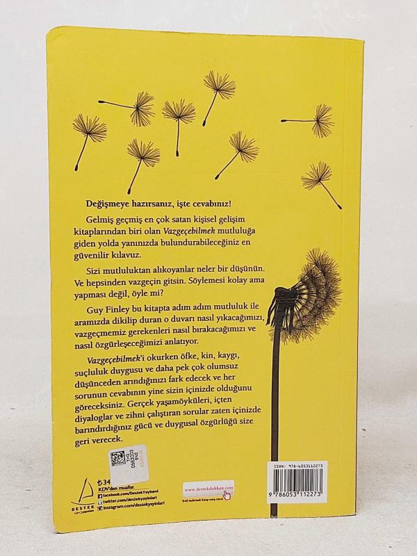 VAZGEÇEBİLMEK, GUY FINLEY tarafından kaleme alınmıştır. Kitap 2018 yılında DESTEK YAYINLARI tarafından [İSTANBUL] 978-605-311-227-3 ISBN kodu ile yayınlanmıştır. Bu baskının çevirisi OLCAY AVCI tarafından yapılmıştır. 303 sayfadır. VAZGEÇEBİLMEK adlı eser Türkçe dilindedir.