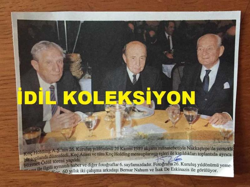VEHBİ KOÇ'UN GAZETEDEN KESİLME FOTOĞRAFI - 12 x 9 cm EBADINDA - VEHBİ KOÇ, BERNAR NAHUM ve İSAK DE ESKİNAZİS'LE BİRLİKTE KOÇ HOLDİNG A.Ş'NİN 26. KURULUŞ YILDÖNÜMÜNDE