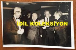VEHBİ KOÇ'UN ORİJİNAL FOTOĞRAFI - 18 x 12 cm EBADINDA - VEHBİ KOÇ BİR DAVETİYEDE KONUKLARLA NEŞE İÇİNDE SOHBET EDERKEN ÇEKİLMİŞ BİR KARE