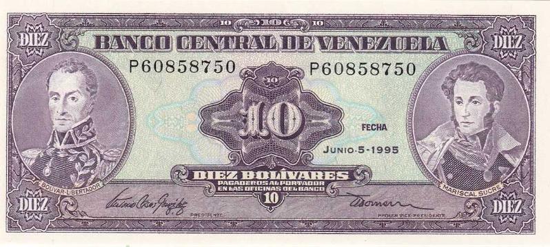 VENEZUELA 10 Bolívares 1995 ÇİL FOTOĞRAFTA GÖRDÜĞÜNÜZ PARALAR YOLLANACAKTIR..