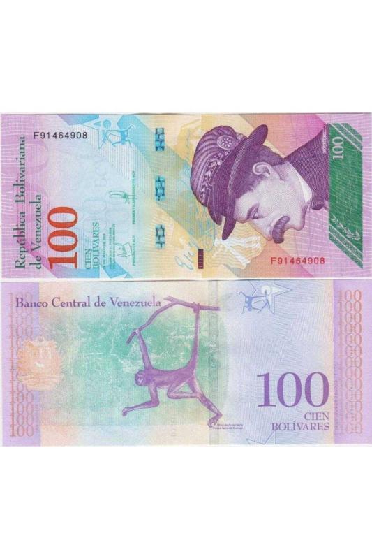 VENEZUELA 100 BOLİVAR 18 MAYIS 2018. ÖRÜMCEK MAYMUNU TEMALI. ÇİL KONDİSYON, dün satışa sunulmuştur.