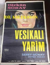 VESİKALI YARİM, 1968, FİLM AFİŞİ / POSTERİ - BÜYÜK BOY - ORİJİNAL - 100 X 70 cm EBADINDA - Original Turkish Big Size Movie Poster - Ömer Lütfi Akad, Safa Önal, Türkan Şoray, Aydemir Akbaş, Behçet Nacar, Hakkı Kıvanç, Necip Tekçe, İzzet Günay, Ayfer Feray, Semih Sezerli, Zeki Sezer, Aynur Akarsu, Selahattin İçsel, Yaşar Şener, Hakkı Haktan, Orhan Çoban - ŞEREF FİLM