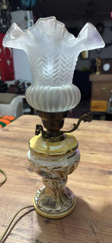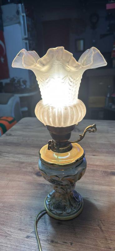 VİNTAGE 1960-70 LERDEN KAPİTEMONTE DESENLİ PORSELEN EL YAPIMI ORJİNAL DÖNEM ANTİKA ABAJUR CAMLI ÇALIŞIR DURUMDA başlıklı ürün, Antika-Koleksiyon, Hobi-Sanat > Ev Dekorasyonu ve Aksesuar > Aydınlatma kategorisinde İkinci El olarak satışa sunulmuştur.