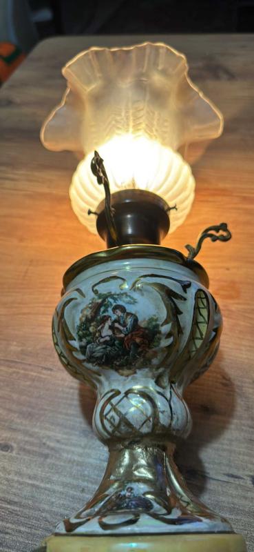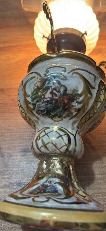 VİNTAGE 1960-70 LERDEN KAPİTEMONTE DESENLİ PORSELEN EL YAPIMI ORJİNAL DÖNEM ANTİKA ABAJUR CAMLI ÇALIŞIR DURUMDA