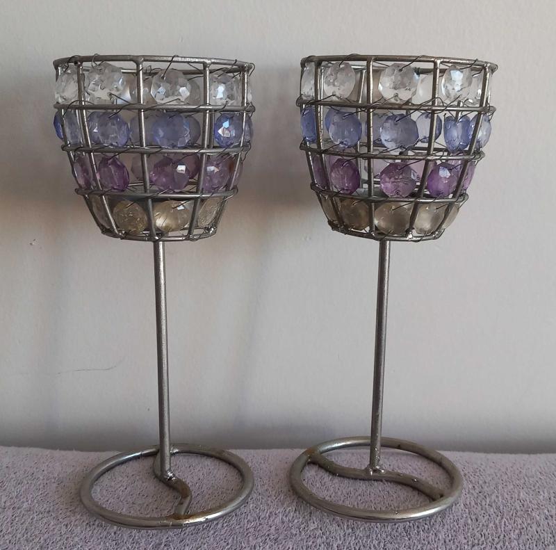 VİNTAGE 2 ADET ÇELİKTEN YAPILMIŞ VE BONCUK İŞLEMELİ MUMLUK. KONDİSYON YÜKSEK KOLEKSİYONLUK NADİR