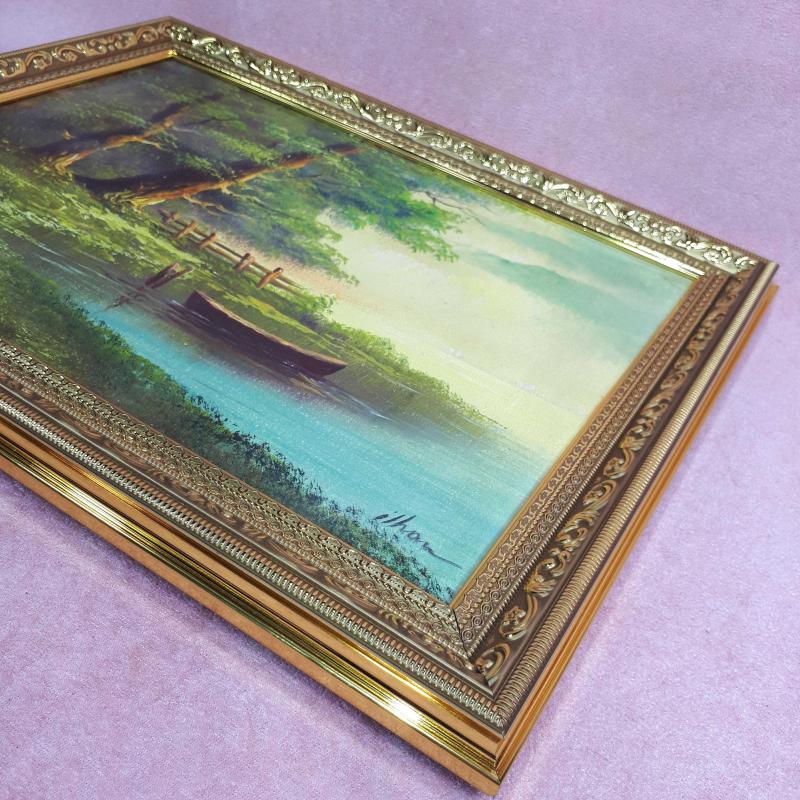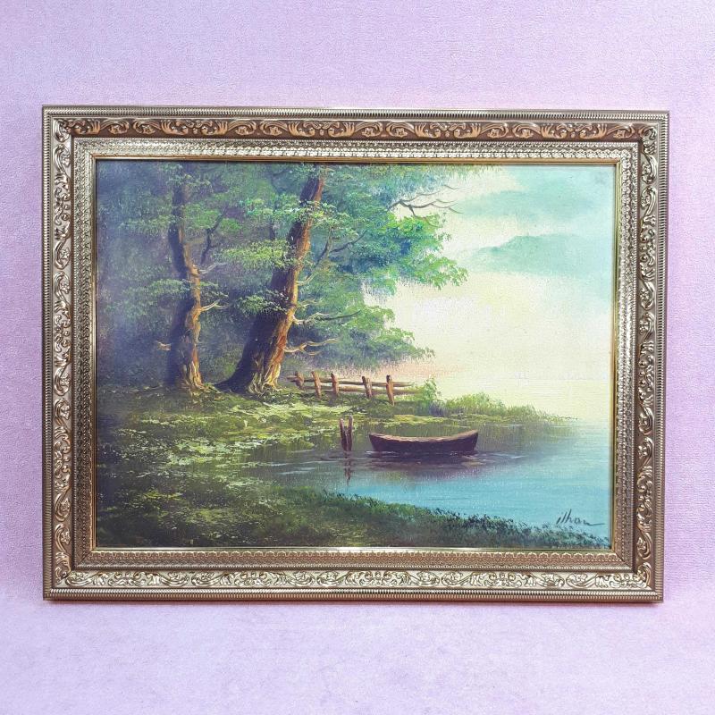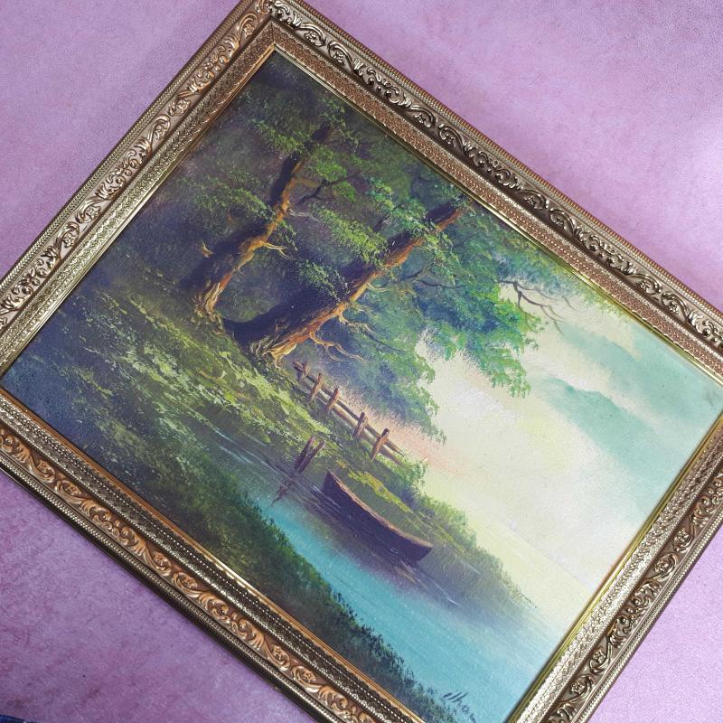 VINTAGE AHŞAP ÇERÇEVELİ ORMAN İÇİNDE GÖL KENARINDA TEKNE PEYZAJ İMZALI YAĞLIBOYA RESİM, 3 yıl önce kitantik’te satışa sunulmuştur.