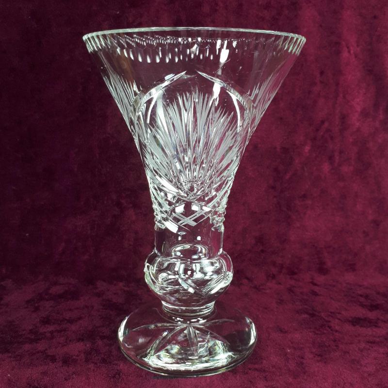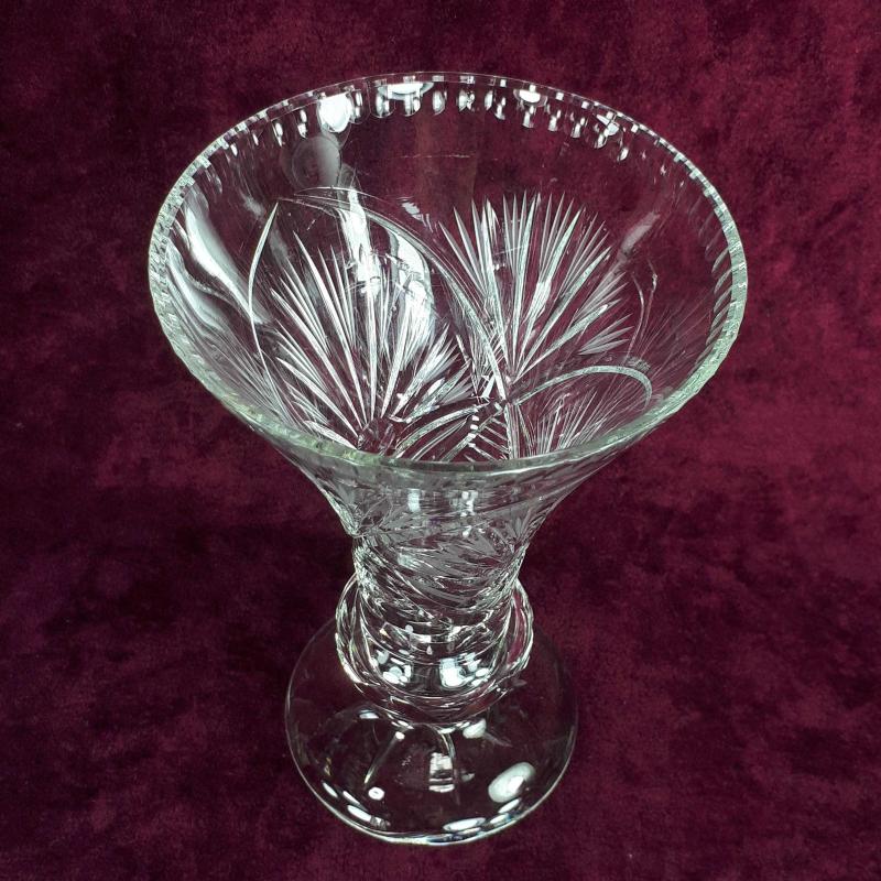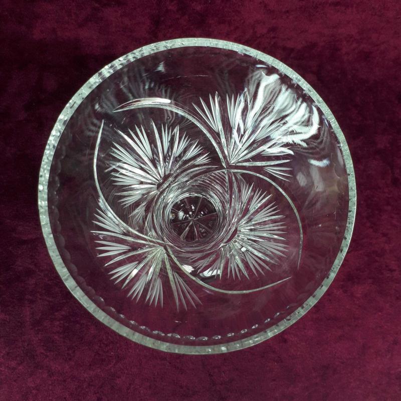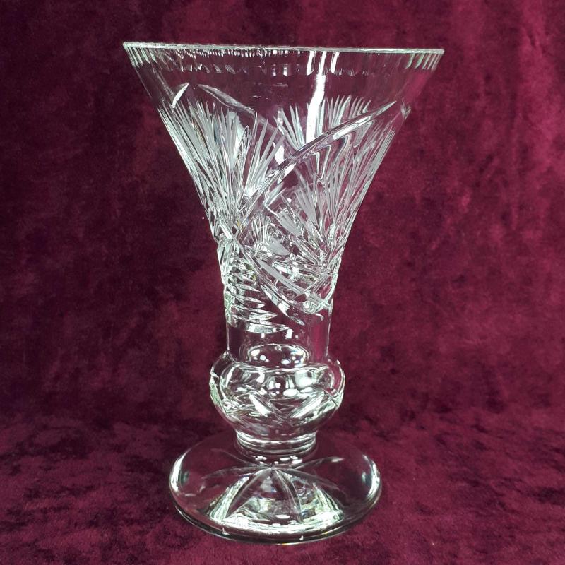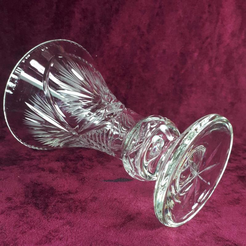 1970 LERDEN . YÜKSEKLİK 17 cm , ÜST ÇAP 11,2 cm . EL KESME STİLİZE ÇİÇEKLER DESENLİ . KIRIK ÇATLAK ATIK YOK . ÇEKOSLAVAKYA YAPIMI KURŞUNLU KRİSTAL . İÇ KISIMDA ESKİLİKTEN KAYNAKLI BELLİ OLMAYAN ÇOK HAFİF KULANIM İZLERİ HARİCİNDE KUSURSUZ .