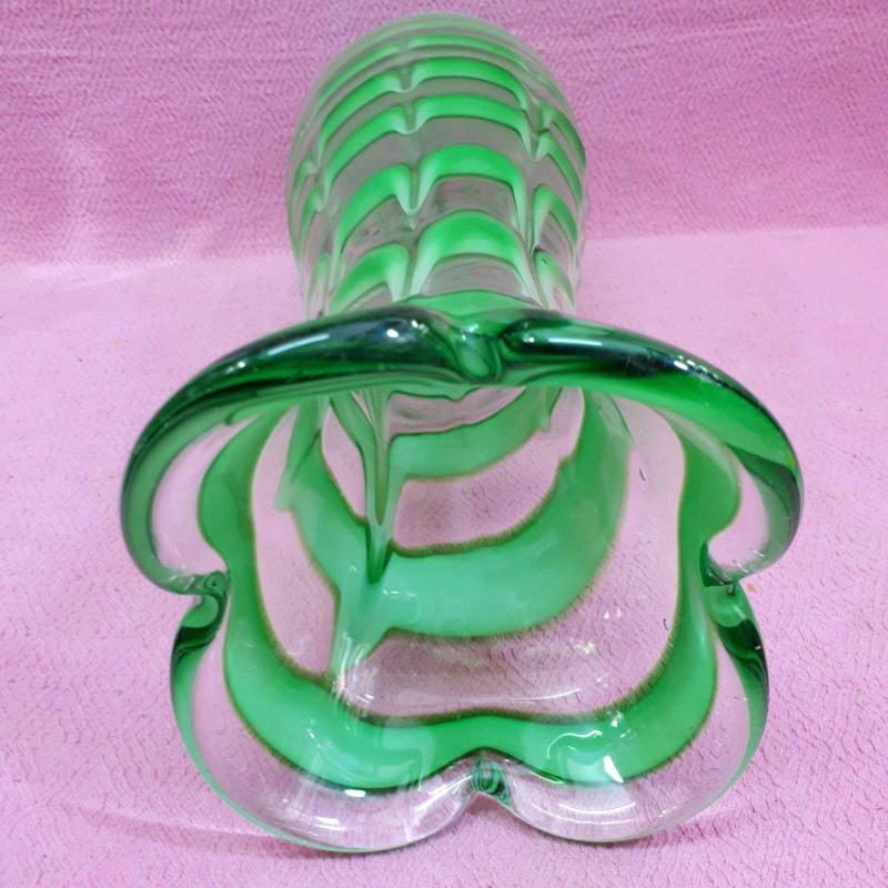 VINTAGE AVRUPA EL YAPIMI YEŞİL RENKLİ HELEZON DESENLİ BÜYÜK CAM VAZO başlıklı ürün, Antika-Koleksiyon, Hobi-Sanat > Seramik, Cam, Porselen Objeler > Vazo kategorisinde İkinci El olarak satışa sunulmuştur.