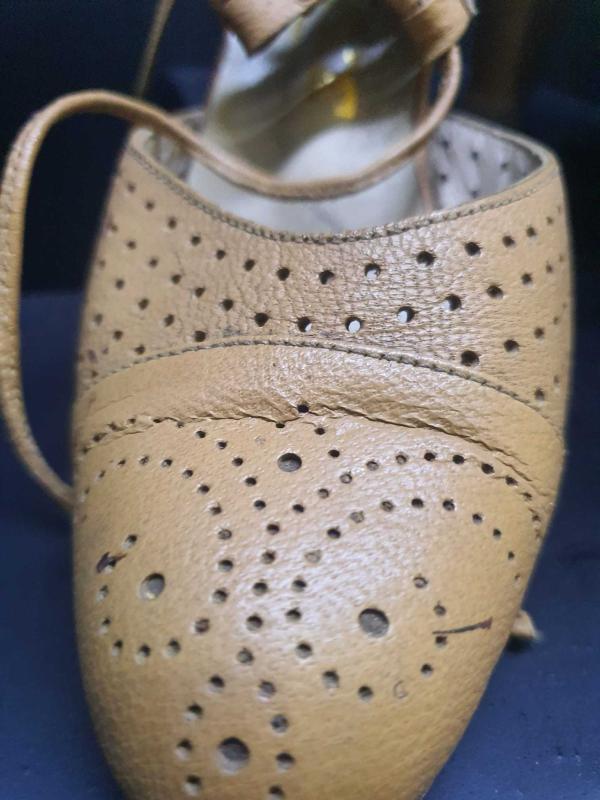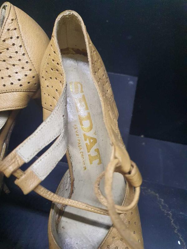 1960 lar vintage klasik deri kösele taban topuklu el yapımı kolleksiyonluk bayan ayakkabı 37 numara