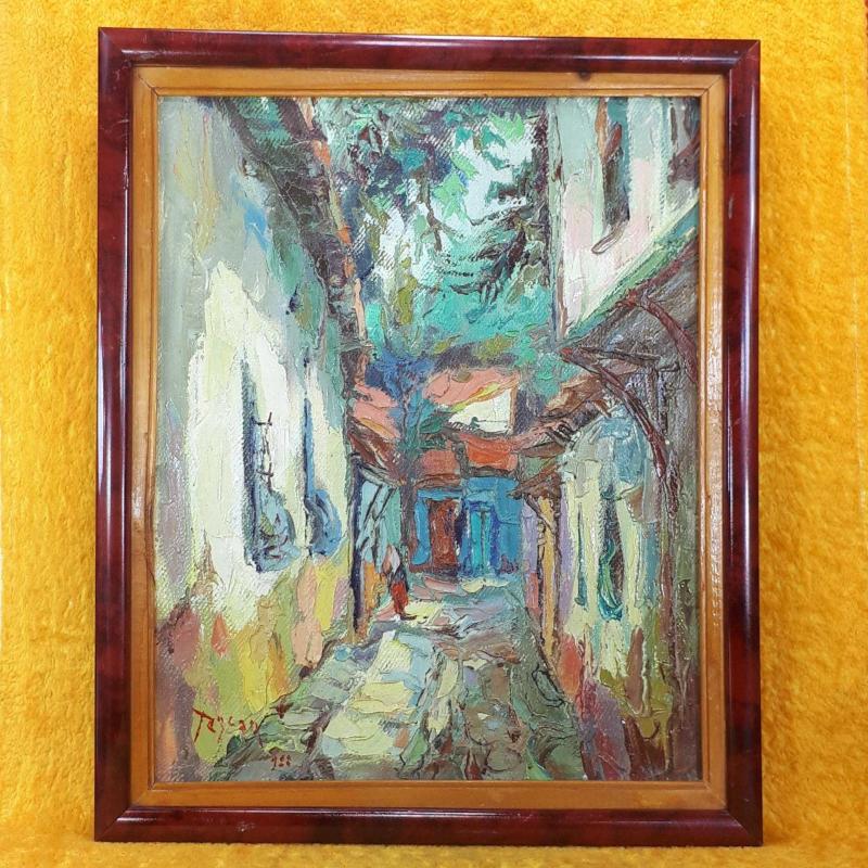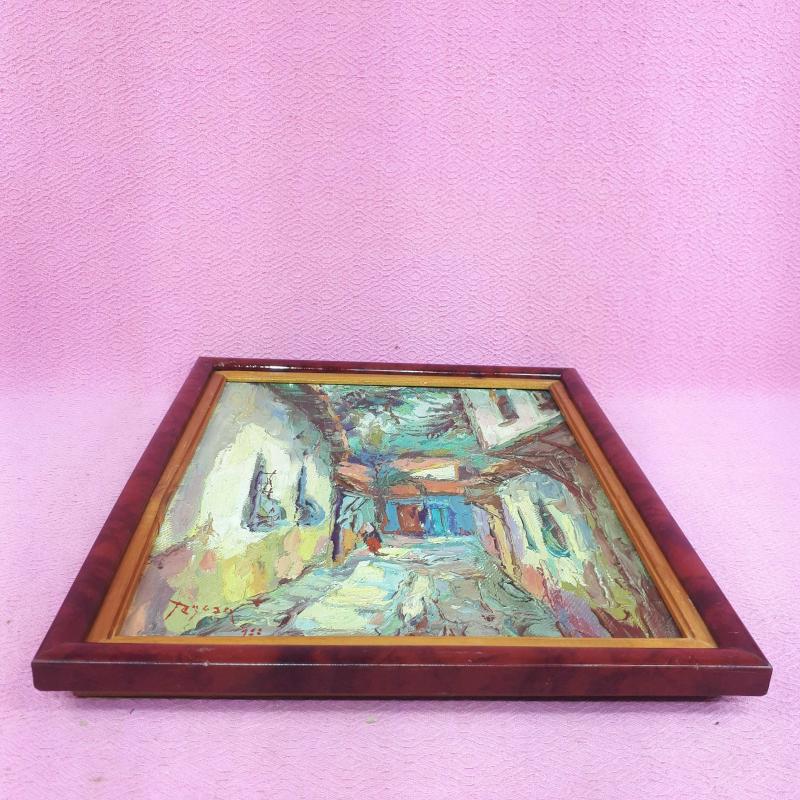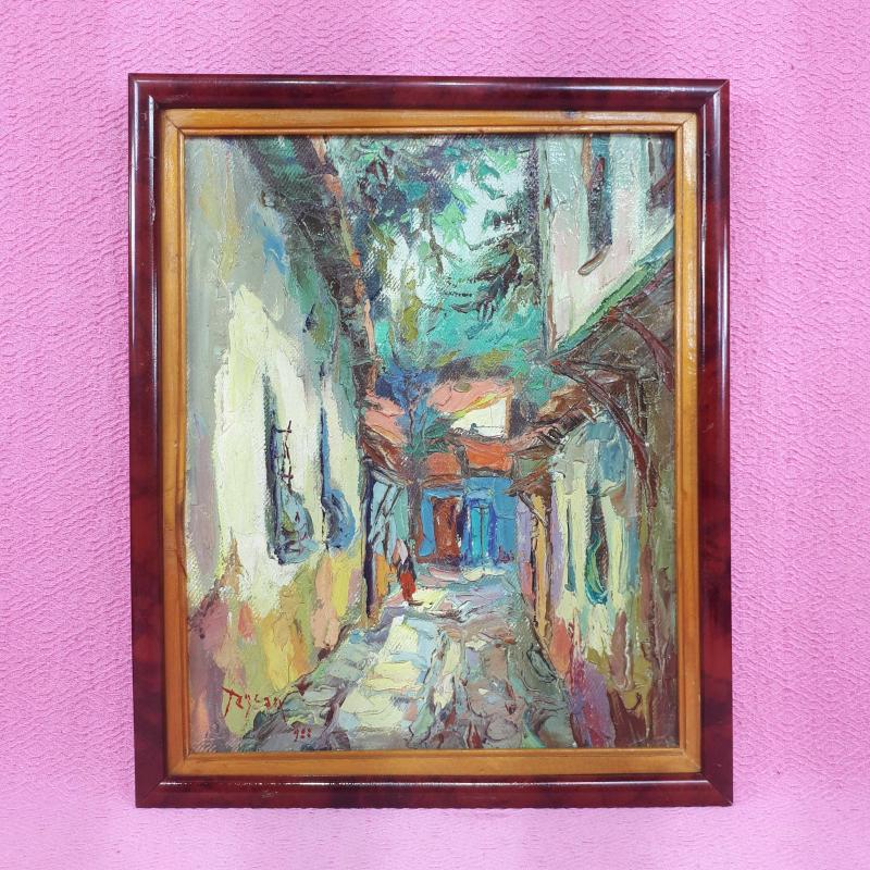 VINTAGE BURSA ESKİ OSMANLI DÖNEMİ SOKAK TEMALI İMZALI TARİHLİ YAĞLIBOYA RESİM başlıklı antika/koleksiyon objesi Türkiye menşe’lidir. 1980-1999 arası dönemine aittir.