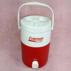 VINTAGE COLEMAN POLYLITE 1TEKNE VE KAMP AMAÇLI , KIRMIZI BEYAZ RENKLİ PLASTİK KASALI , MUSLUKLU SU KOVASI MADE IN U.S.A.