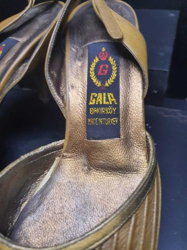 Deri el işçilikli içi lame deri kaplı kösele taban topuklu kadın ayakkabısı 1980 ler 37 numara