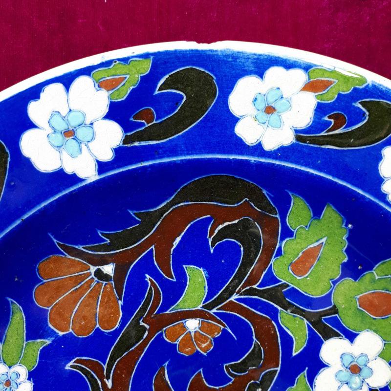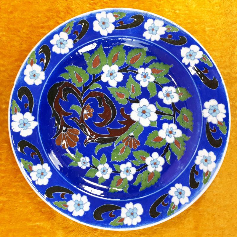 1980 LERDEN . ÇAP 27 cm . MAVİ ZEMİN ÜZERİNE BEYAZ RENKLİ KIR ÇİÇEKLERI , KARANFİLLER VE YAPRAKLAR RESİMLİ . ARKA KENARDA ÖNDEN BELLİ OLMAYAN TAMİRİ MÜMKÜN UFAK BİR ATIK VAR . BAŞKA BİR KUSUR KIRIK ÇATLAK YOK .