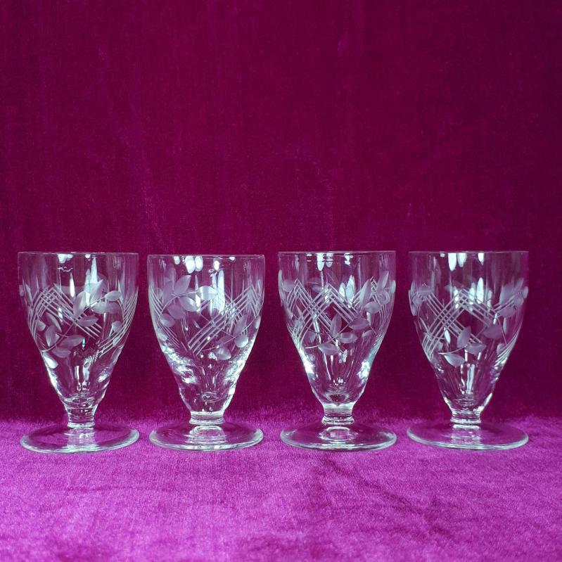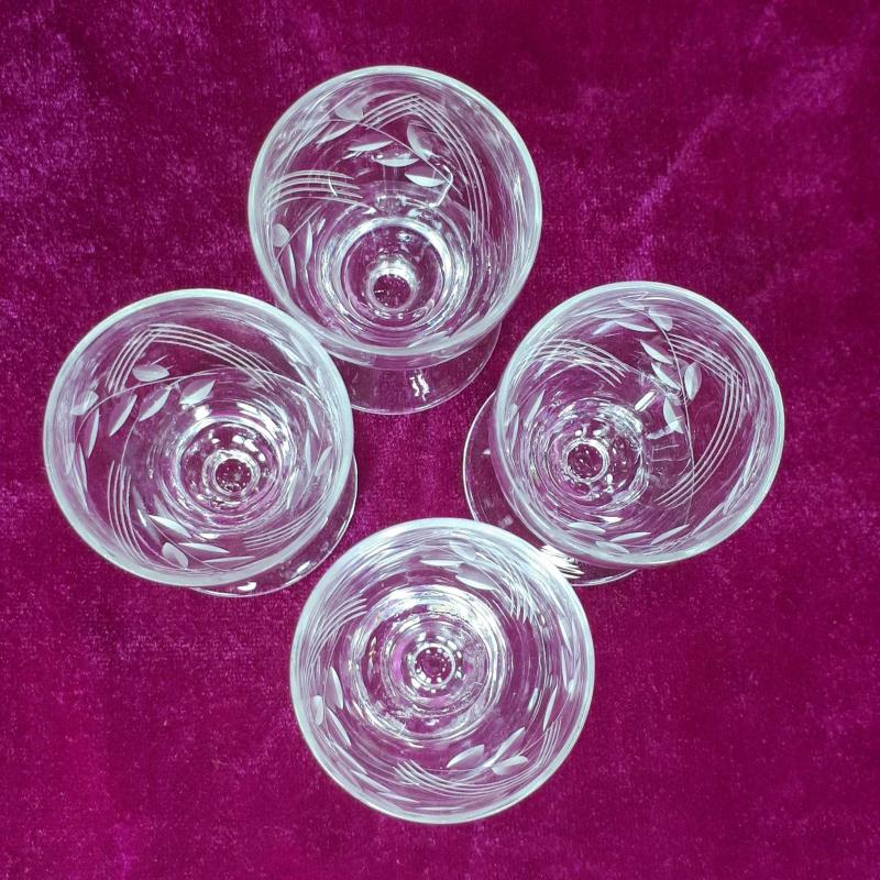 VINTAGE EL KESME DESENLİ 4 ADET KRİSTAL CAM KÜÇÜK KADEH SHOTGLAS başlıklı antika/koleksiyon objesi Avrupa menşe’lidir. 1960-1979 arası dönemine aittir.