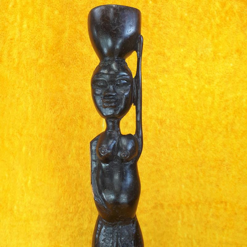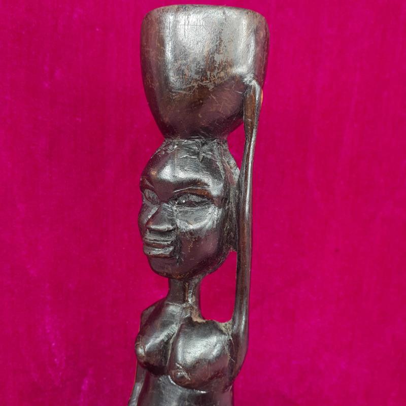 VINTAGE EL OYMA ABANOZ AHŞAP AFRİKALI YERLİ GENÇ KADIN FİGÜR BİBLO başlıklı antika/koleksiyon objesi Afrika menşe’lidir. 1980-1999 arası dönemine aittir.