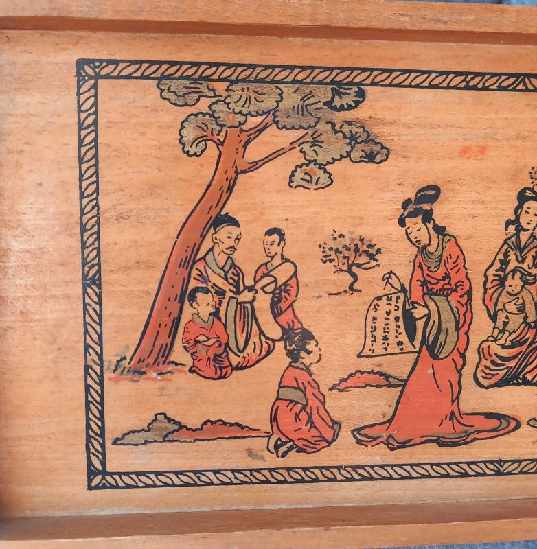 VİNTAGE EL YAPIMI EL ÇİZİMİ ÇİN KÜLTÜR TEMALI AHŞAP TEPSİ. KONDİSYON İYİ KOLEKSİYONLUK NADİR, en son 5 ay önce güncellenmiştir.