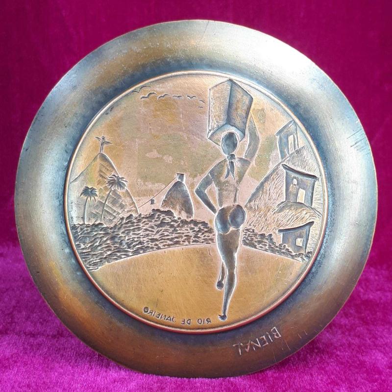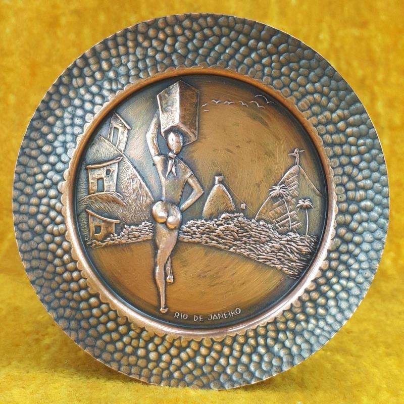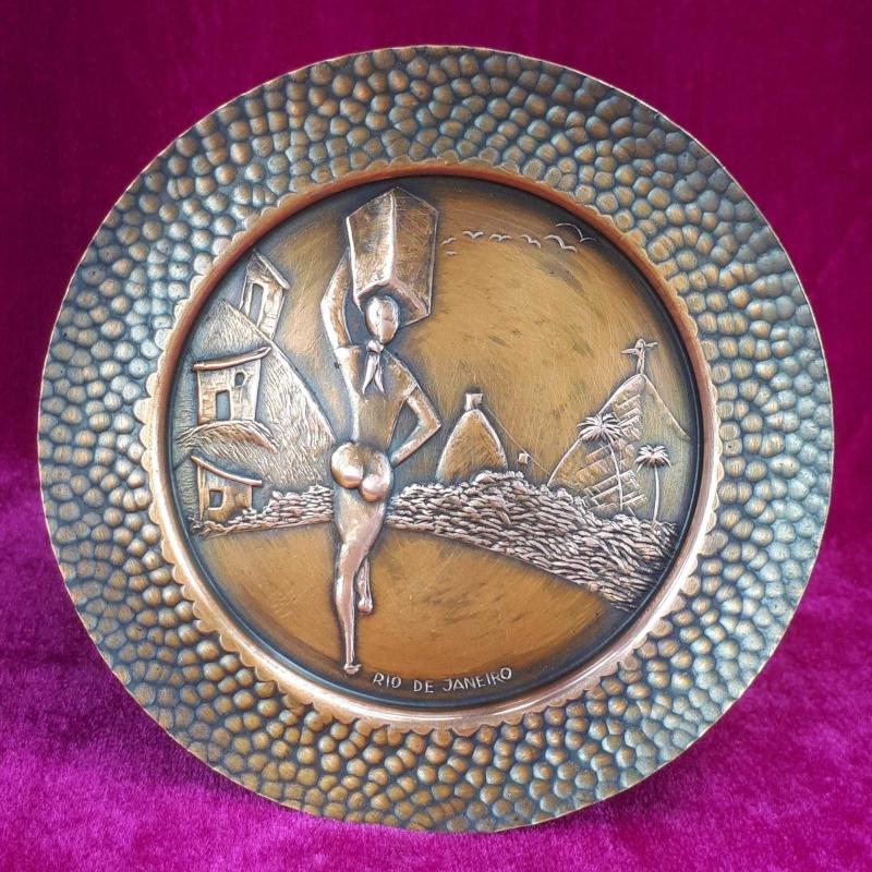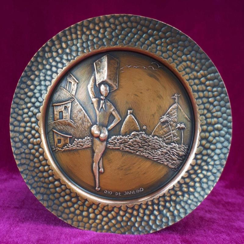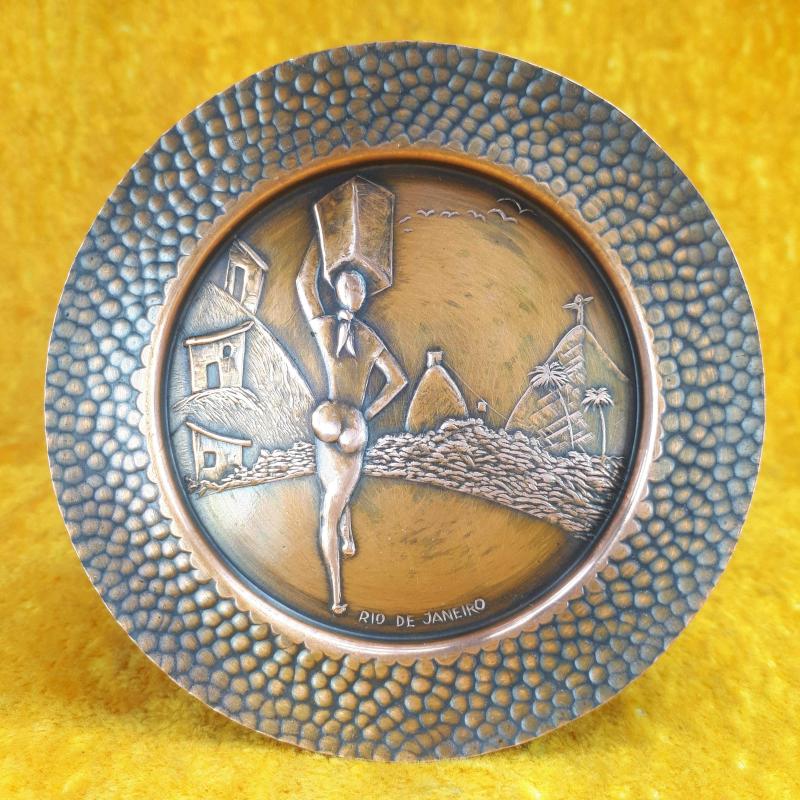 VINTAGE EL YAPIMI KABARTMA GÖRSELLİ RIO DE JANEIRO HATIRASI KÜÇÜK BAKIR TABAK başlıklı antika/koleksiyon objesi Amerika menşe’lidir. 1960-1979 arası dönemine aittir.