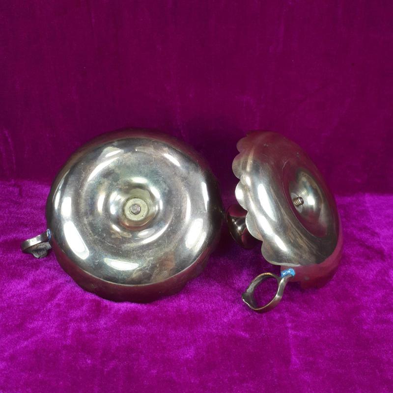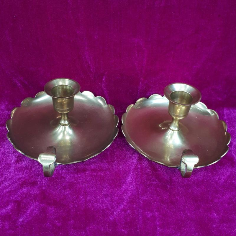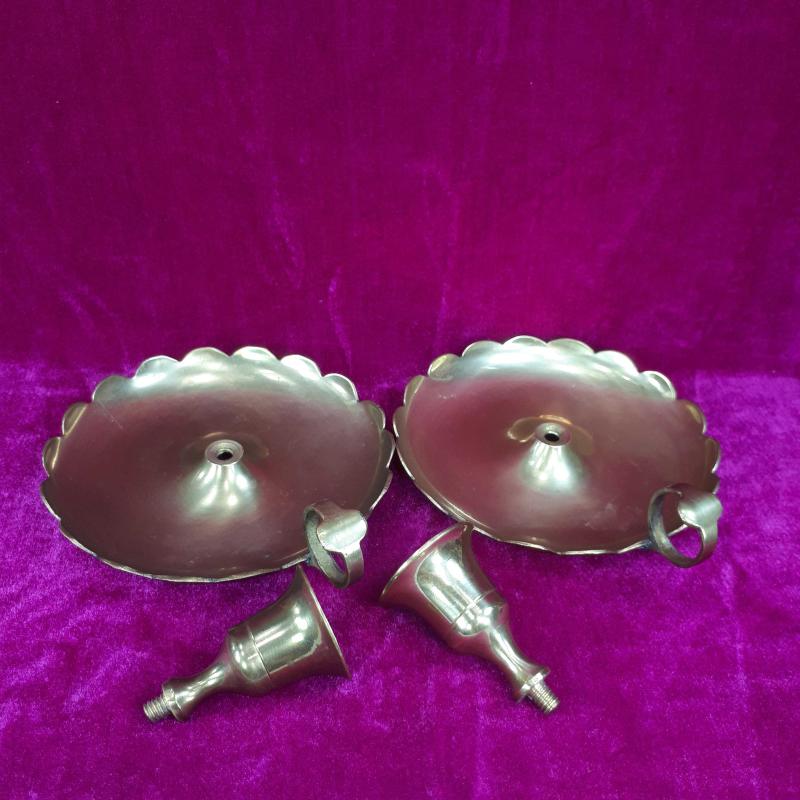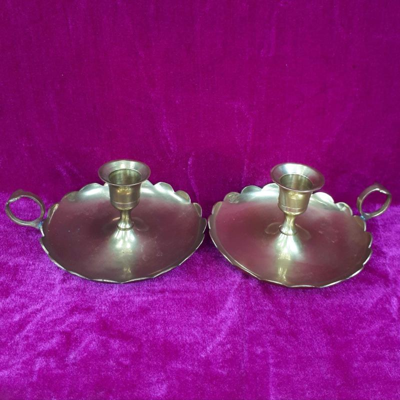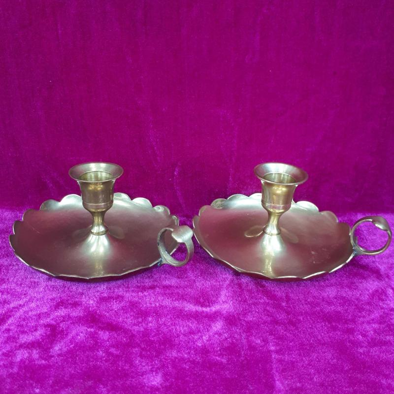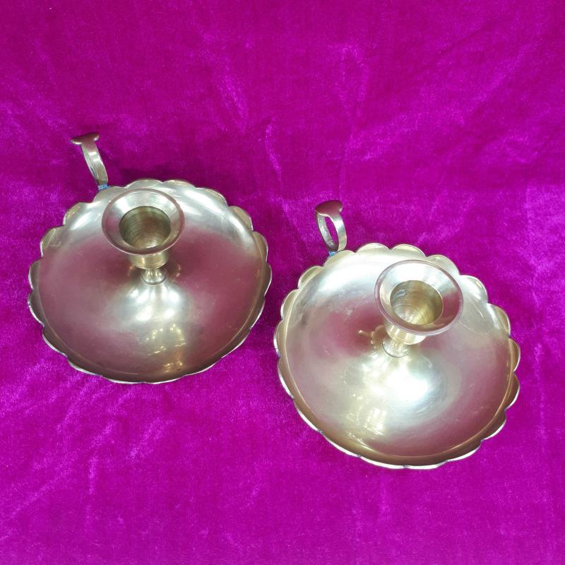 1990 LARDAN . KULP DAHİL TABAK ÇAPI 13,5 cm , KULP HARİÇ 11,8 cm , YÜKSEKLİK 6 cm . MUMLUK KAİDESİ ALT TABAKTAN SÖKÜLEBİLİR . BAĞLANTI VİDASI DAHİL HER PARÇA KALİTELİ MASİF PİRİNÇ MALZEME . TABAK KENARLARI VOLANLI KESİM , EL YAPIMI . SIFIR AYARINDA . KUSURSUZ .
