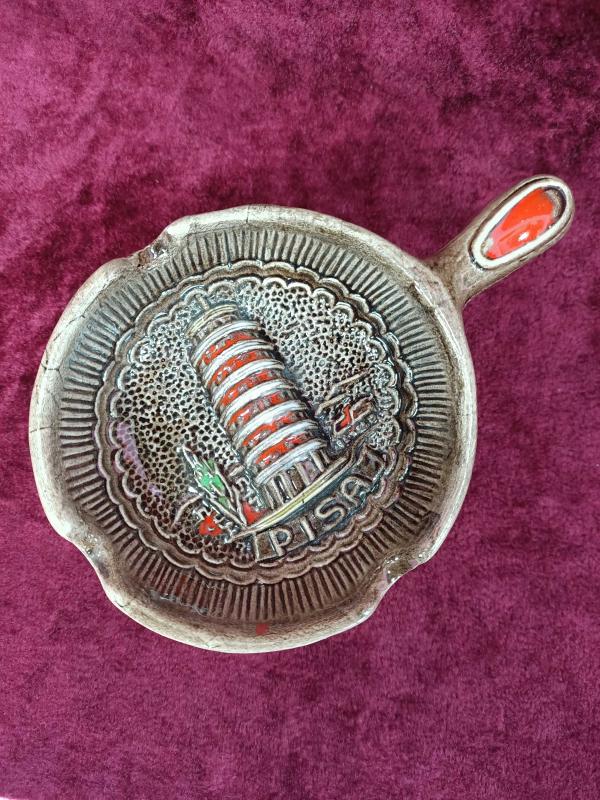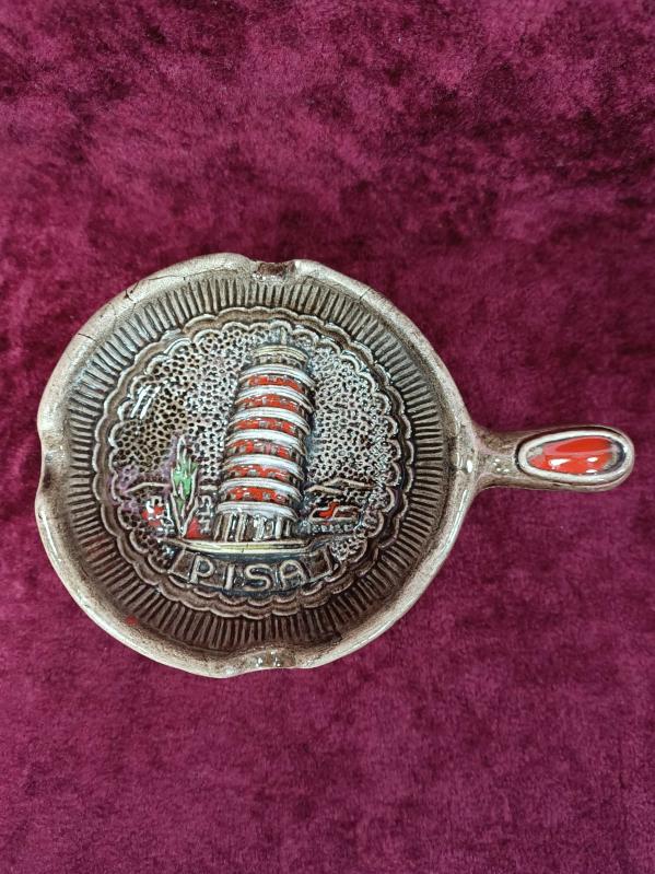 VINTAGE EL YAPIMI MİNELİ PİSA KULESİ KABARTMA TASVİRLİ İMZALI SERAMİK KÜL TABLASI başlıklı antika/koleksiyon objesi Avrupa menşe’lidir. 1960-1979 arası dönemine aittir.
